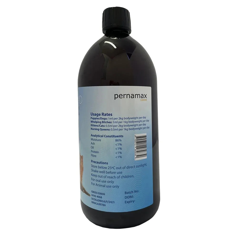 Vitamin D & Calcium - Palatable and popular with both cats and dogs, Perna Col-Cal D is a delicious Calcium & Vitamin D supplement specially designed to ideally meet the nutritional requirements of young animals, whelping bitches and nursing queens. Also suitable for administration to older animals to supplement their diet. Perna Col-Cal D is highly palatable & can simply be added to drinking water. Calcium is well known as an essential component for optimal bone growth and bone structure, hence why a Calcium-rich supplement is ideal for young, growing animals. Vitamin D improves is known to enhance the absorption of Calcium, maximising the efficacy of your supplement. Usage Rates Puppies/Dogs: 1ml per 2kg bodyweight per day Whelping Bitches: 1ml per 1kg bodyweight per day Kittens/Cats: 0.5ml per 2kg bodyweight per day Nursing Queens: 0.5ml per 1kg bodyweight per day.