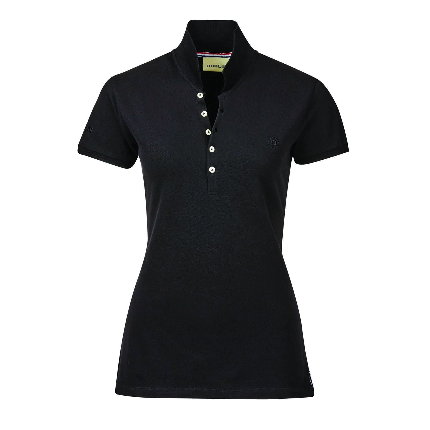 The Dublin Lily Polo has a regular fit with a contrast Dublin D logo on the chest. Stripe detail on back of neck with 4 button placket for a sporty look and side splits for extra movement.
