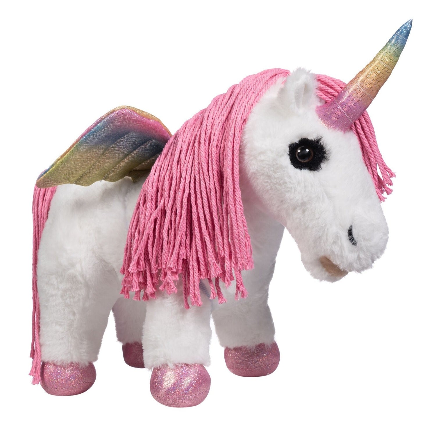 The pastel-coloured wings are removable so children can practice saddling afterwards. Bridles and even bandaging can also be learned in a playful way on the unicorn. The plush unicorn stands stable on all four hooves. The mouth is equipped with a small magnet so that the bit of the separately available bridle sits comfortably in it.