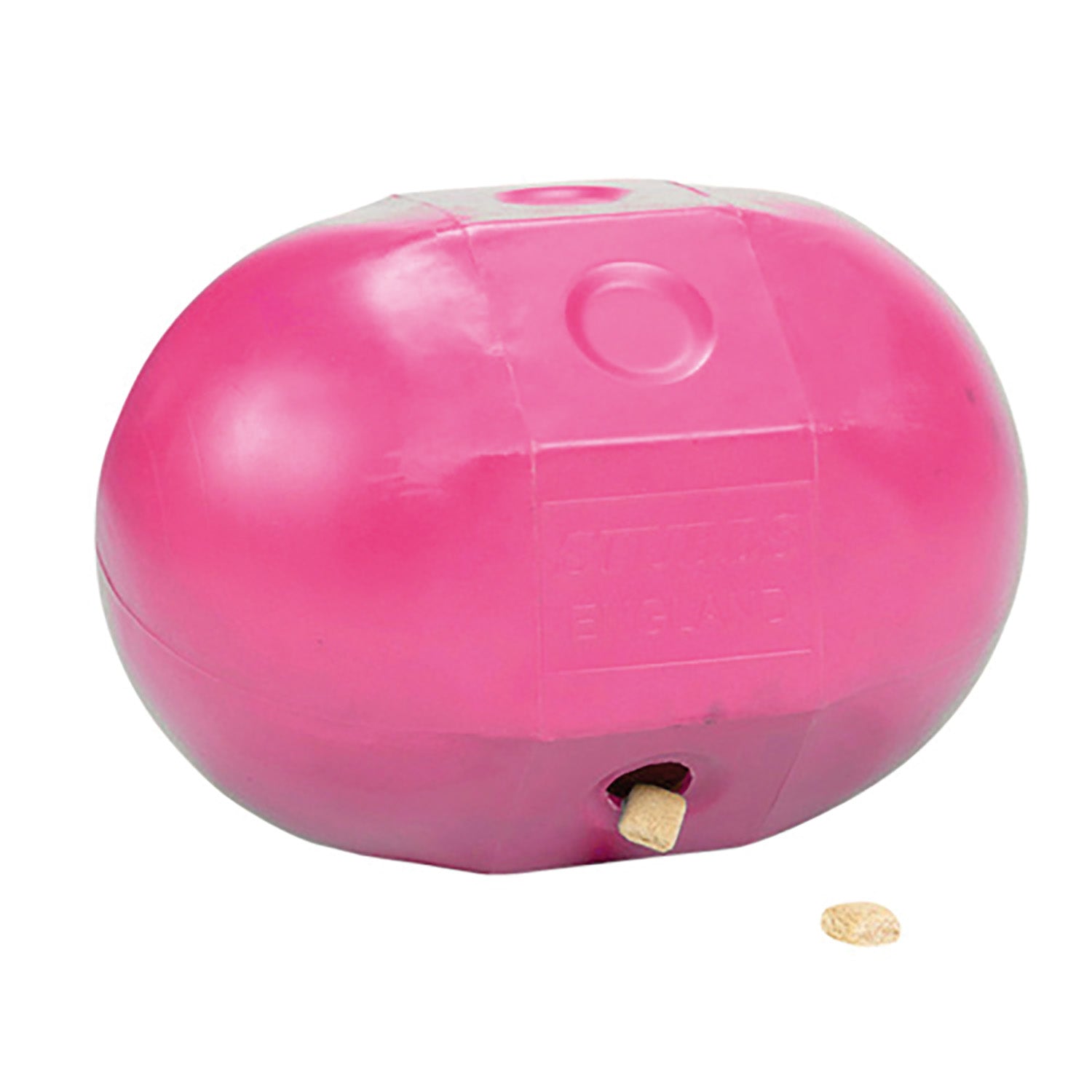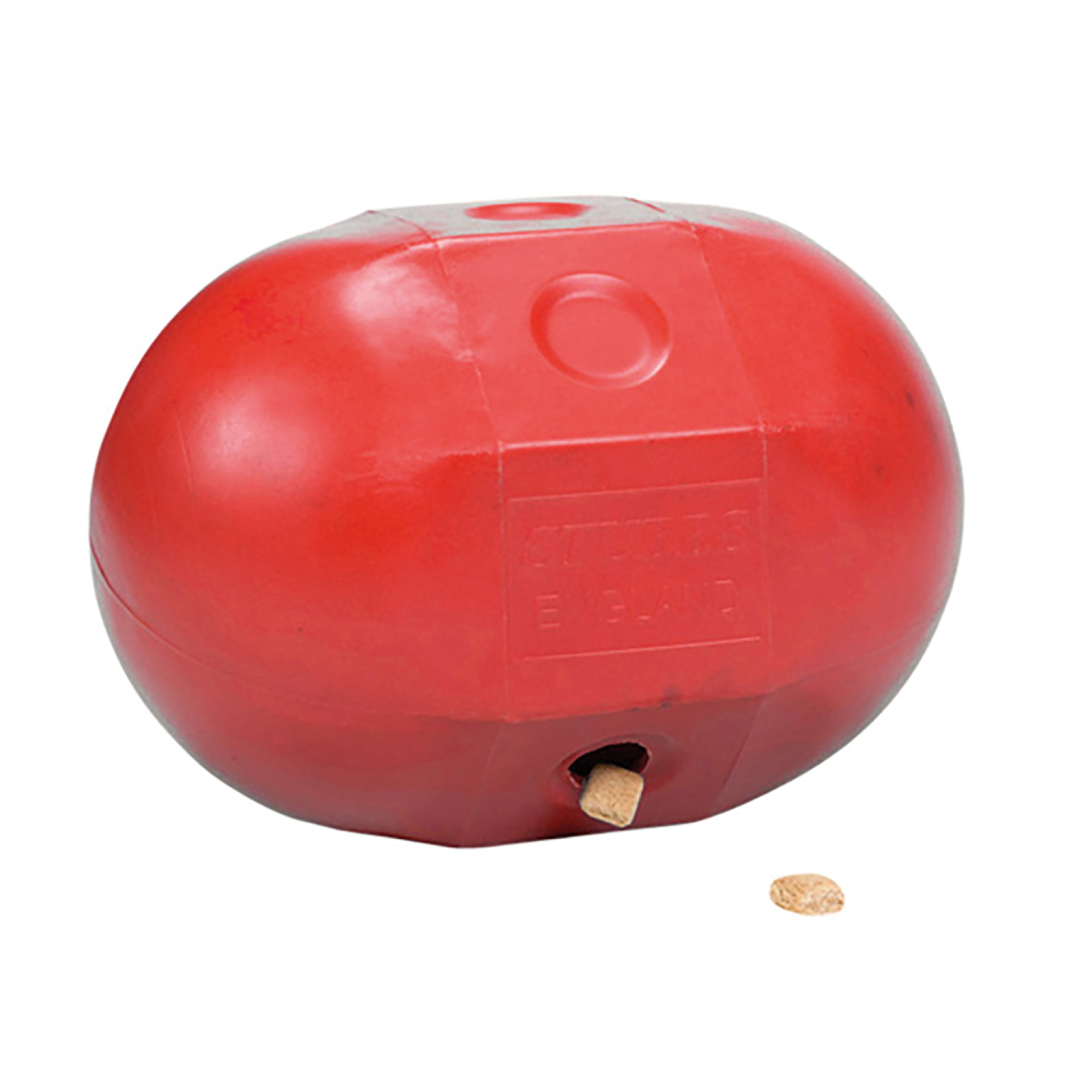 Combining a shape that is difficult to roll in a straight line with generous size, this dribble treat feeder will keep the horse very busy. The dispensing hole is 30mm diameter and suits most treats. With a separate built-in funnel, filling is easy and quick. Moulded from ultra-tough stubbythene, this toy is supremely durable.