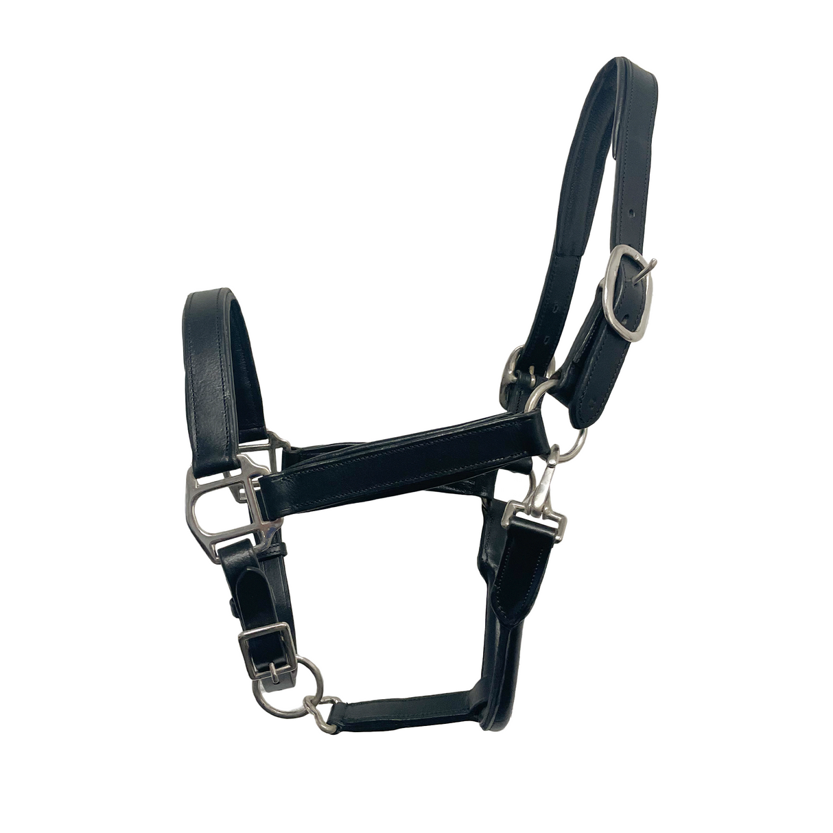 This GS Equestrian Leather Padded Head Collar has padding on the 3cm wide headpiece and the 3cm wide noseband as well as the 3cm cheekpieces for additional comfort. It has large metal fixtures including the buckles on each side to make the headcollar fully adjustable to suit the individual horse as well as making it easier to do up and undo.