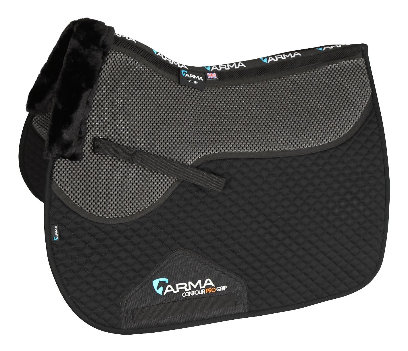 Designed with performance and comfort in mind, the ARMA soft grip saddlecloth provides a high degree of shock absorption and slip resistant cushioning under the saddle. BREATHABLE stay-smart anti-pill 100% cotton outer. Impressive PRO GRIP SYSTEM technology keeps the pad in place and the saddle secure. Ventilated 3D AIR MOTION mesh zones along spine for increased airflow. ULTRA DRI ZONE lining instantly wicks sweat from the horse to reduce the risk of rubbing and increase comfort. SupaFleece wither trim for a luxurious touch. Girth guides and touch close retaining straps. Hardwearing girth guards. Machine washable.