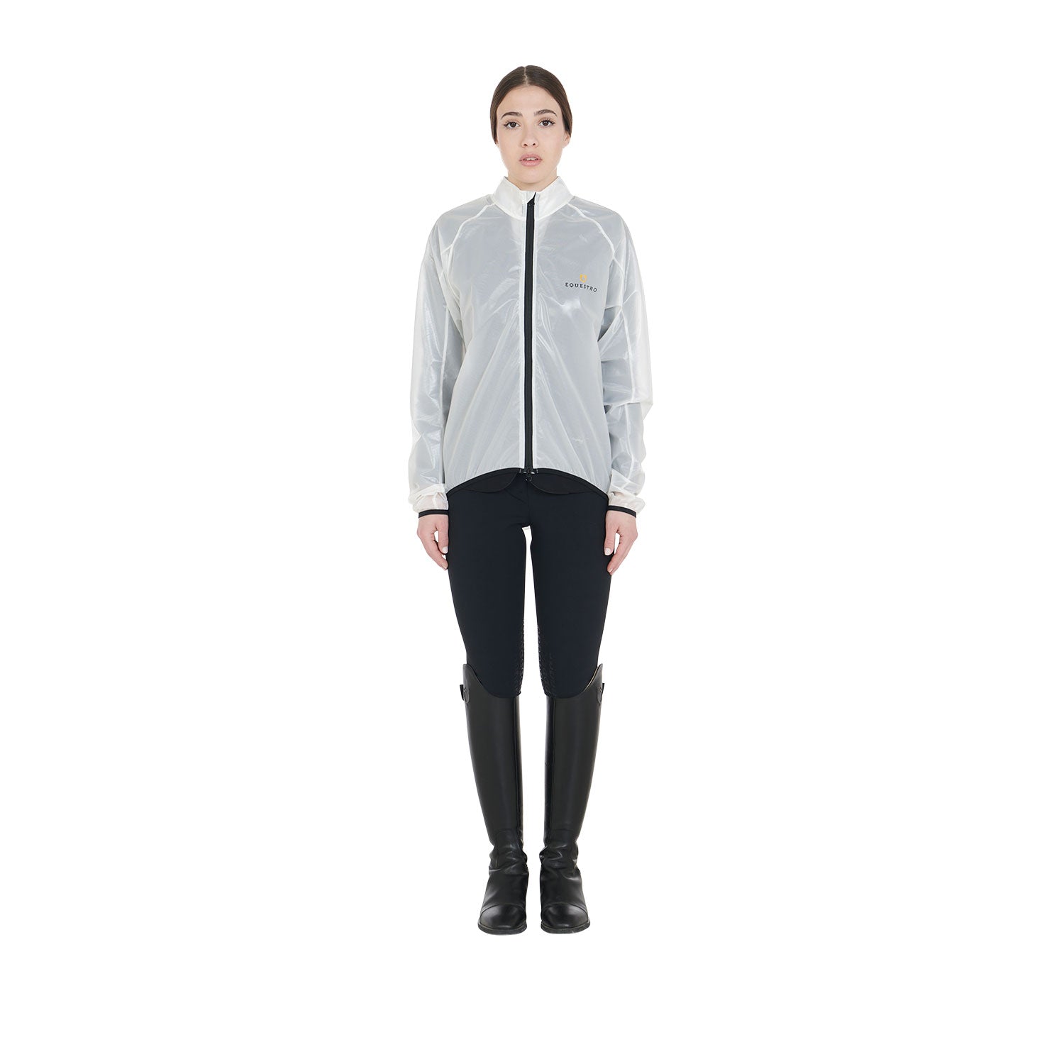 Unisex transparent overcoat, in technical fabric that protects from wind and rain and guarantees maximum freedom; of movement, Equestro logo on the left side of the chest.