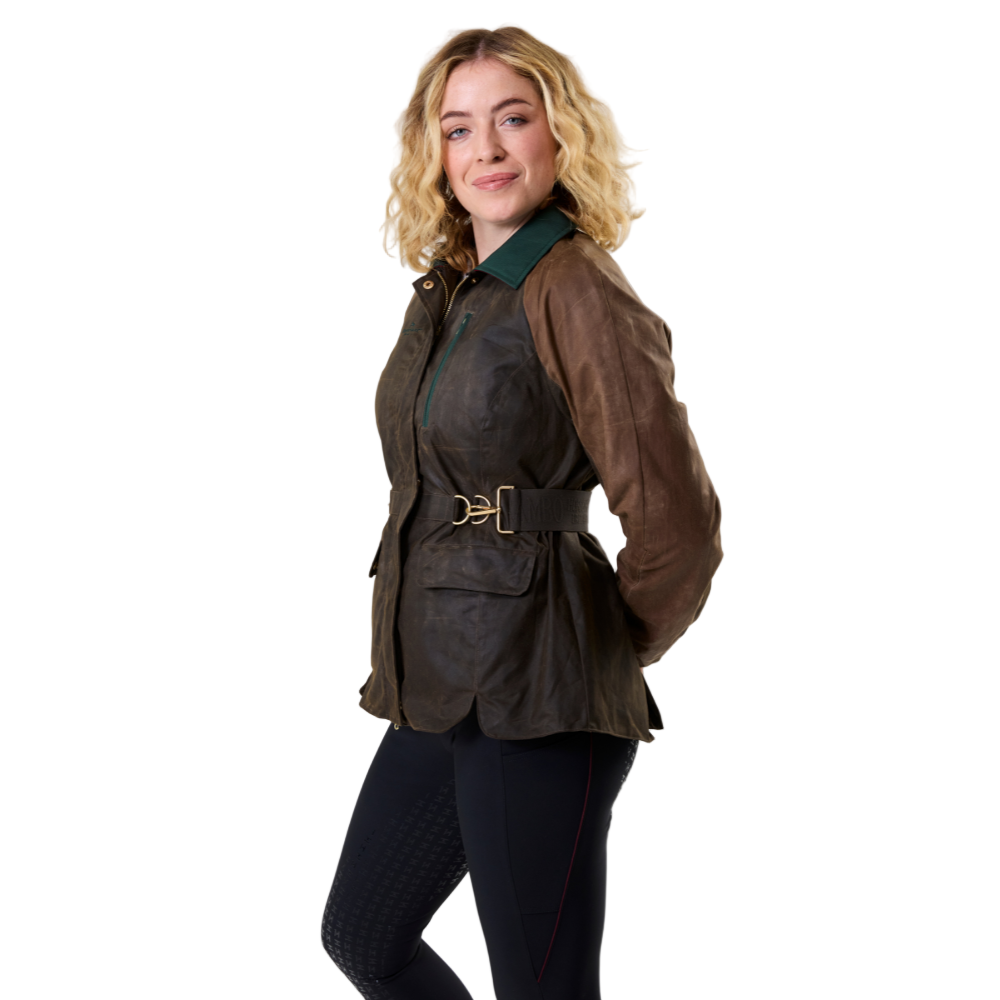 This collectible jacket, designed to celebrate 40 years of Horseware, combines heritage with functionality. Crafted from 100% British Millerian waxed cotton with a 100% ballistic nylon collar and a 100% cotton lining, it offers both durability and comfort. Inspired by the very first Horseware rug, it incorporates Rambo Original ballistic fabric on the collar along with an adjustable elastic surcingle belt for a distinctive touch. The showerproof finish keeps you dry, while the double back vent and front arch detail provide freedom of movement. Complete with two flap pockets, brass hardware, and functional D-rings, this jacket is a timeless and practical piece.