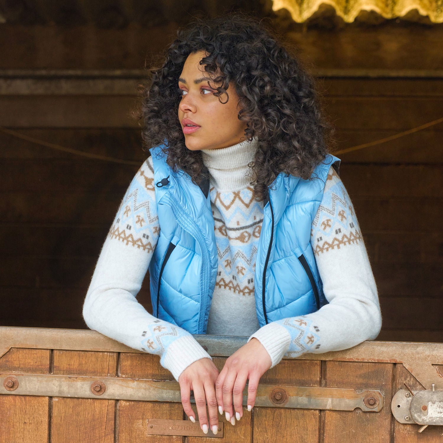 Experience luxurious comfort with the HV Polo Dyanne Pullover. Featuring a special jacquard knit, this pullover boasts a vibrant color pattern on the upper part and cuffs. The iconic horse logo coin at the bottom, along with tonal ribbing at the cuffs and bottom hem, adds a touch of sophistication. Enjoy a comfortable and stylish fit with this must-have addition to your wardrobe.