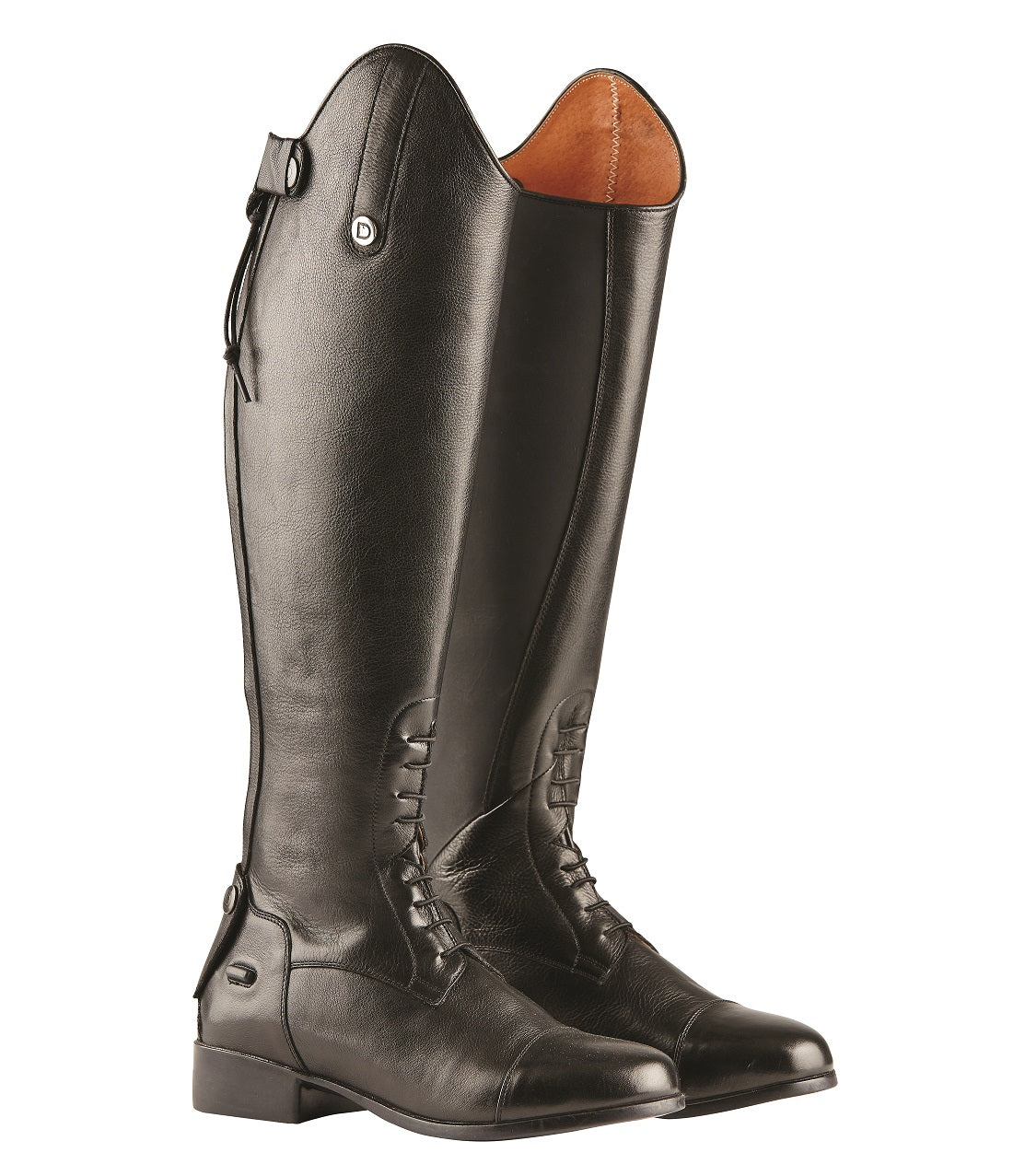 - Hohe spanische Schnittoberlinie mit angenähter Prachtlasche.