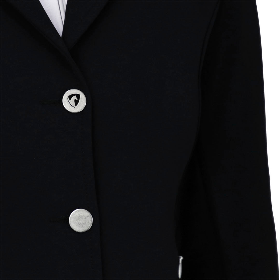 Verfügt über einen atemberaubenden Hy Equestrian-Symbol-Pin am Arm. Der Silvia Show Jacker wird mit drei silbernen Knöpfen sicher geschlossen und ist somit die perfekte Ergänzung zu Ihrem Wettkampfoutfit, um Ihre Garderobe für die kommende Saison aufzufrischen.