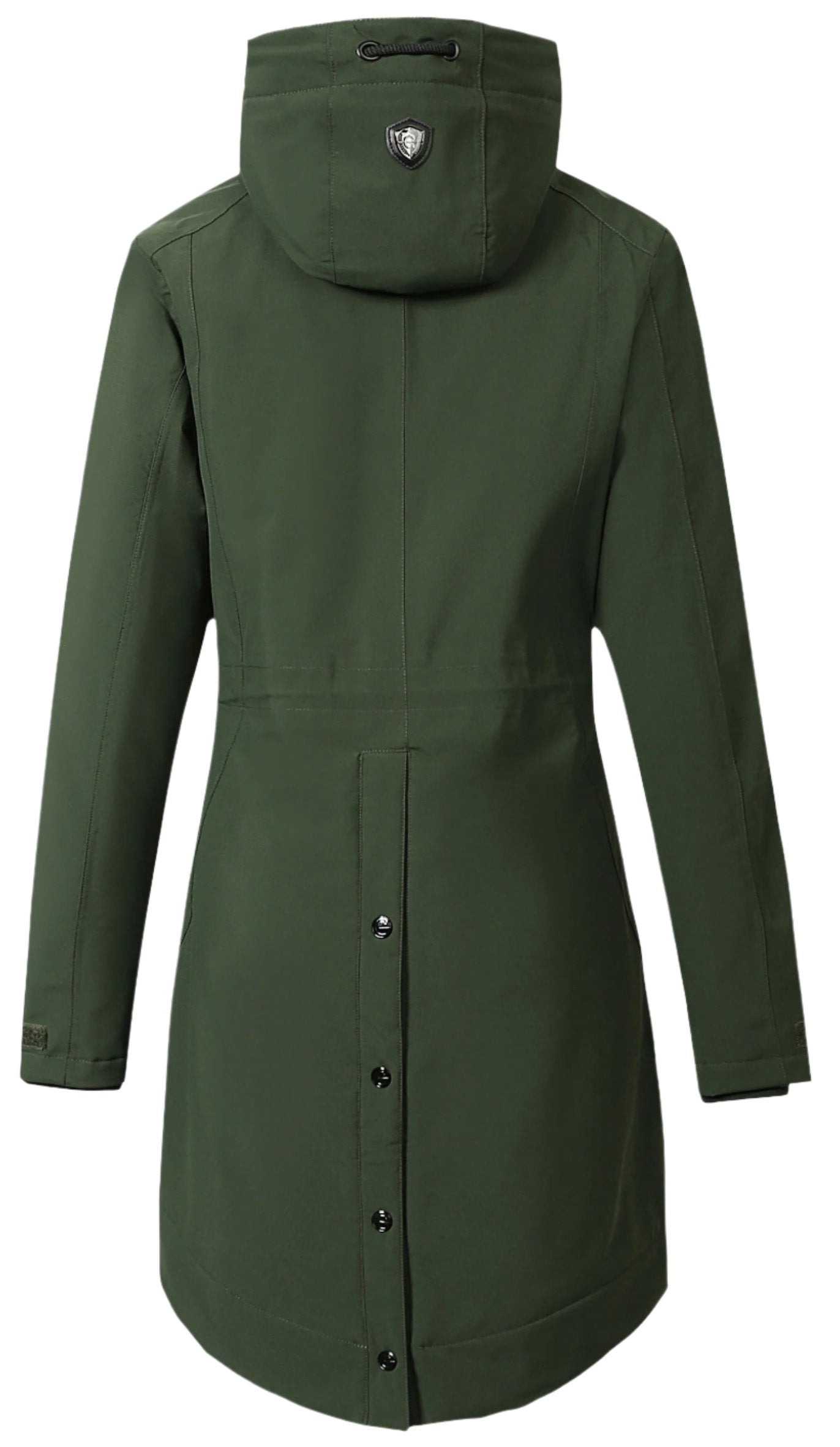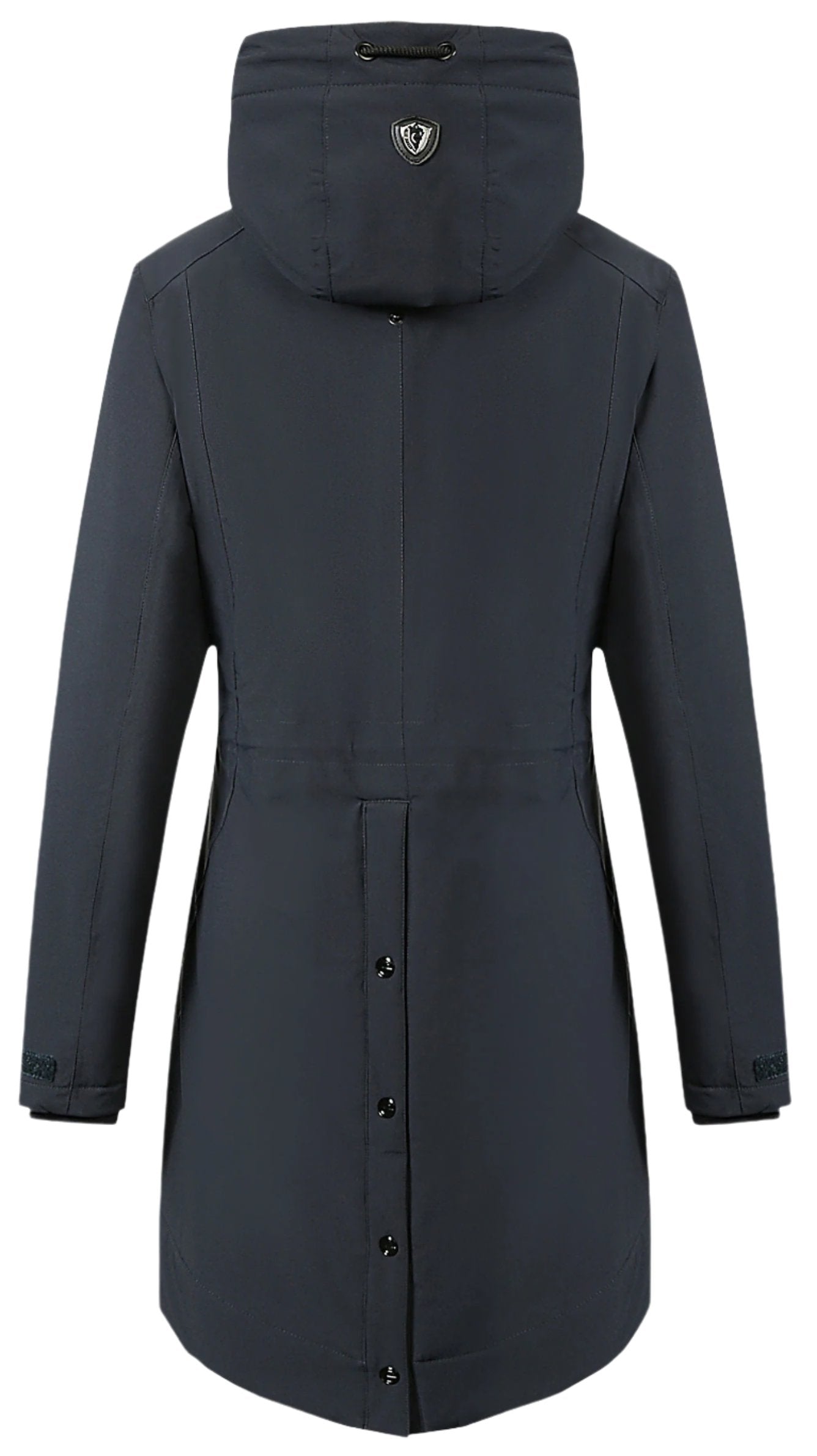 The Covalliero Ladies Parka features a plush teddy fleece lining for optimal cold protection, along with a high collar and adjustable hood for a snug fit. Its elastic outer material allows for unrestricted movement, while the hood can be secured with a button or removed with a zip fastener. The jacket also includes adjustable cuffs, a feminine, fitted silhouette, and multiple pockets for convenience. Additionally, it boasts exceptional water resistance and breathability, making it a top choice for outdoor activities.