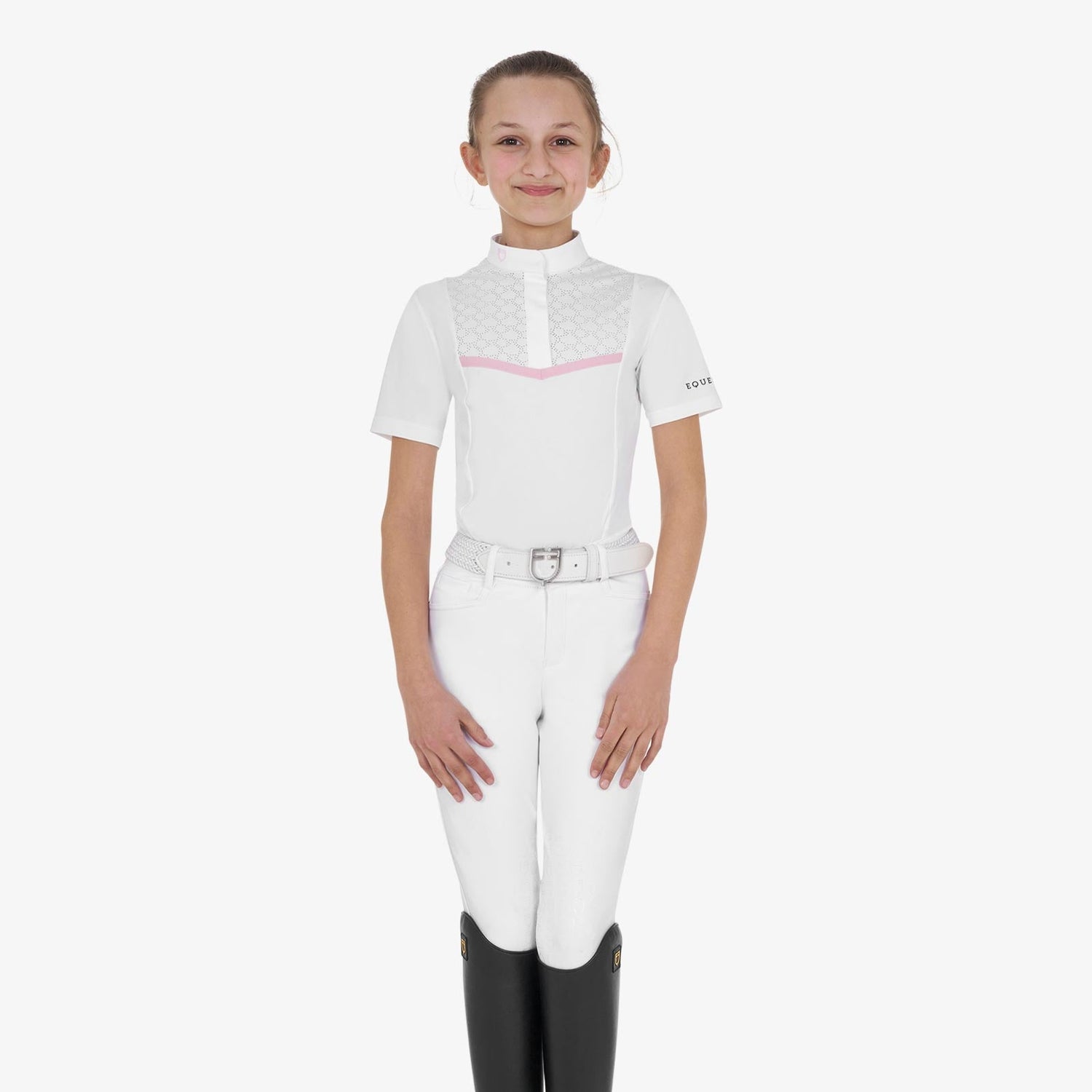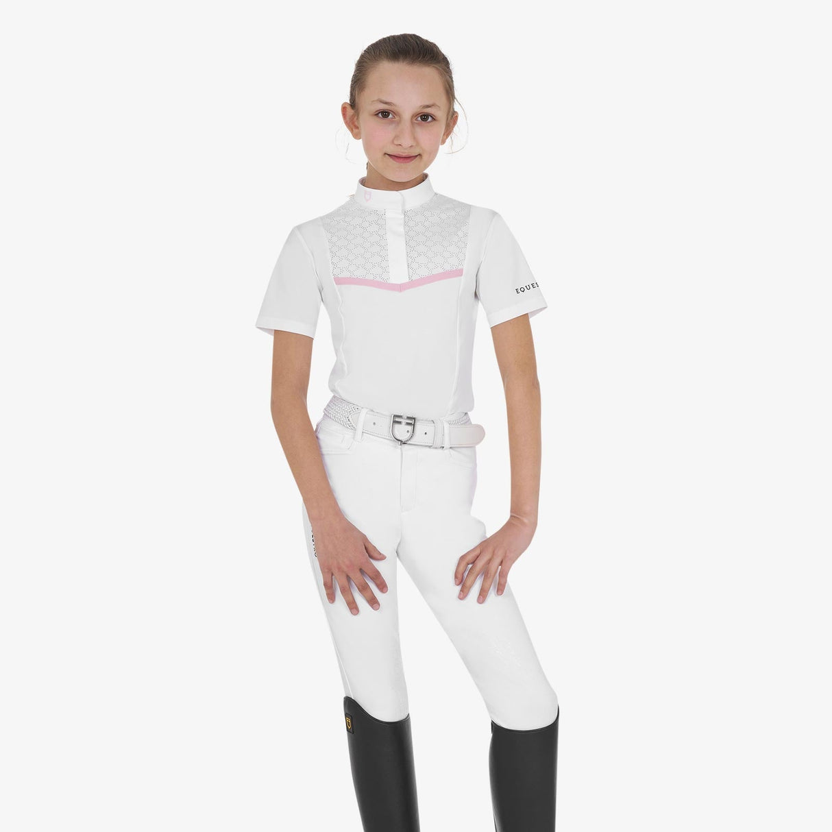 Equestro Girls' Slim Fit Competition Jacket With Chest Perforated Inserts - White/Pink / 10 Years ist auf Lager und wird versandt, sobald es wieder verfügbar ist