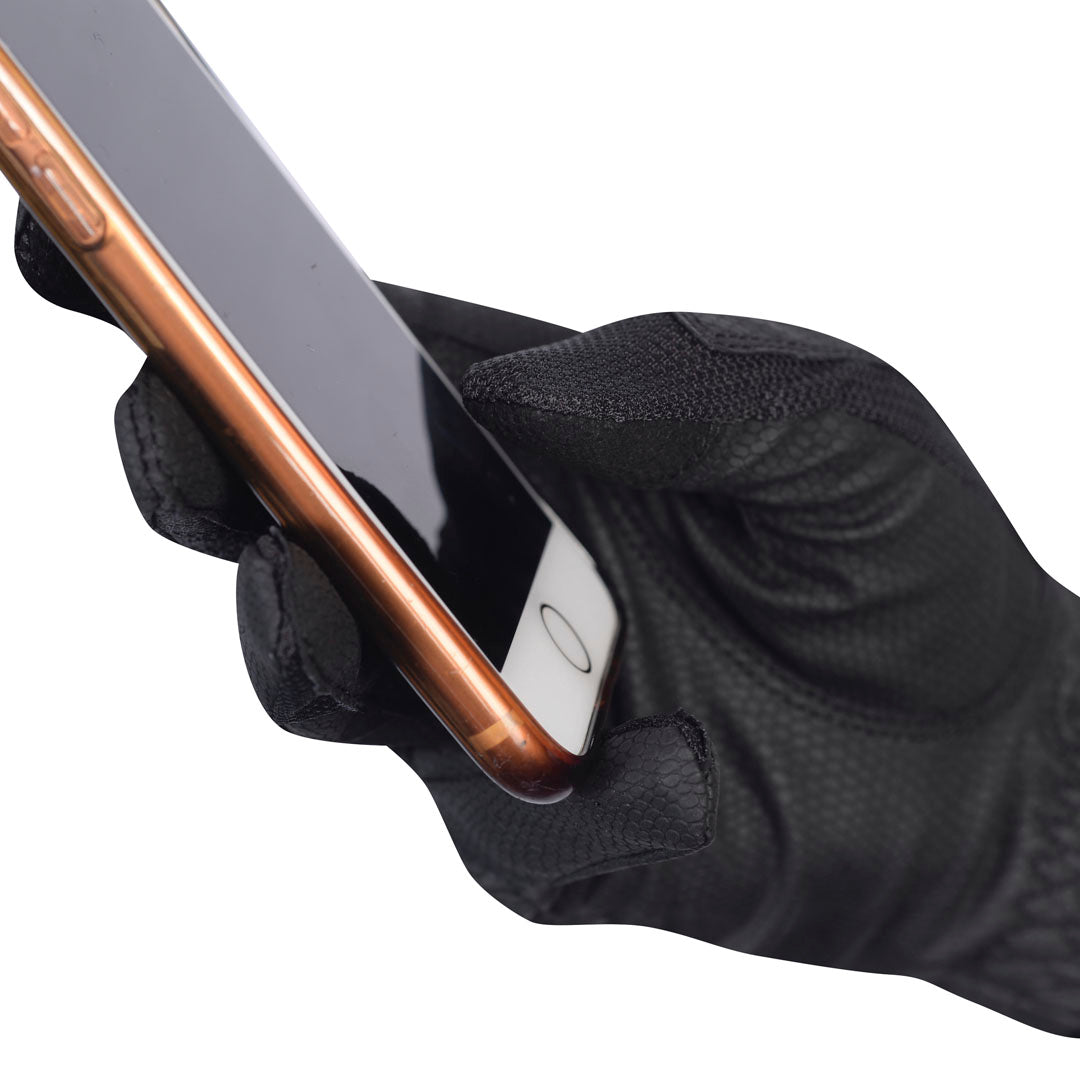 Die Dublin Mesh Panel Reithandschuhe bestehen aus einem dehnbaren synthetischen Serino-Gewebe für Komfort und Griffigkeit, mit luftbelüfteten Mesh-Einsätzen auf dem Handrücken für Atmungsaktivität. Ausgestattet mit einem verstellbaren Klettbandverschluss und Touchscreen-kompatibel für eine einfache Bedienung.