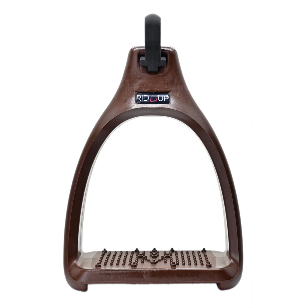Die senkrechte Öse am Steigbügel erleichtert das Anlegen von Rid'Up. Das Steigbügelleder liegt flach auf der Sattelgegend und sorgt so für ein dezentes und angenehmes Gefühl unter der Wade. Für mehr Komfort und Halt bleiben die Steigbügel senkrecht zum Pferd.