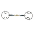 Shires Blue Sweet Iron Bevel with Lozenge – Das abgeschrägte Gebiss ermöglicht eine leichte Hebelwirkung und bietet etwas mehr Kontrolle, wodurch Kontur, Kopfhaltung und Reaktionsfähigkeit gefördert werden. Die losen Scheiben aus Messinglegierung in der Mitte können dazu beitragen, ein wählerisches Pferd zu beruhigen. Mundstückstärke: 15 mm. Wangenhöhe: 55 mm (4,5 Zoll, 5 Zoll), 70 mm (5,5 Zoll).