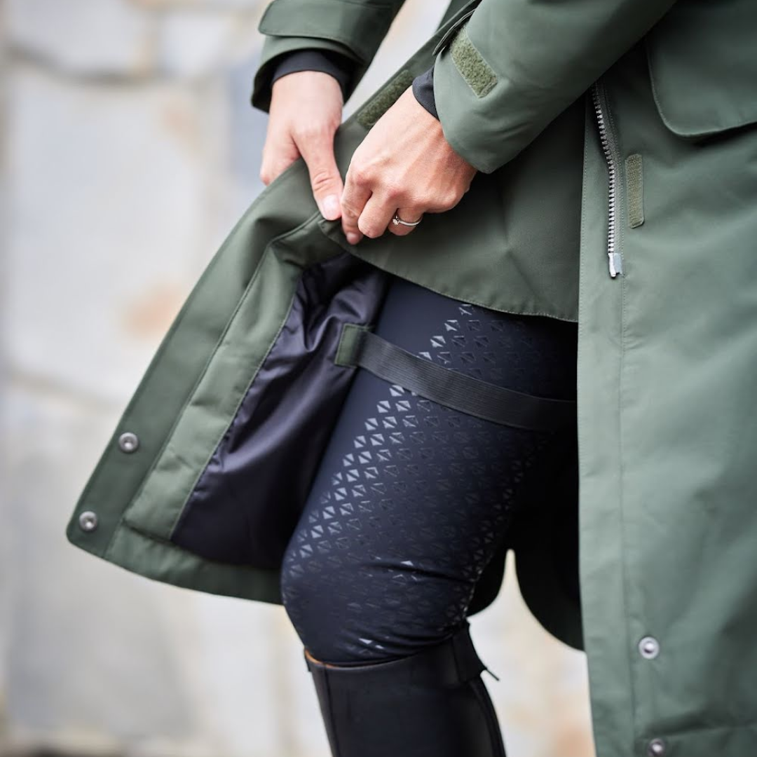 - EquTex™, elastisches 2-lagiges recyceltes Polyestergewebe mit wasserdichter und atmungsaktiver Membran. Wasserdichtigkeit 20.000 mm / Atmungsaktivität 20.000 g/mm2/24h. Das Außenmaterial verfügt über eine umweltfreundliche, fluorkohlenstofffreie DWR-Behandlung.