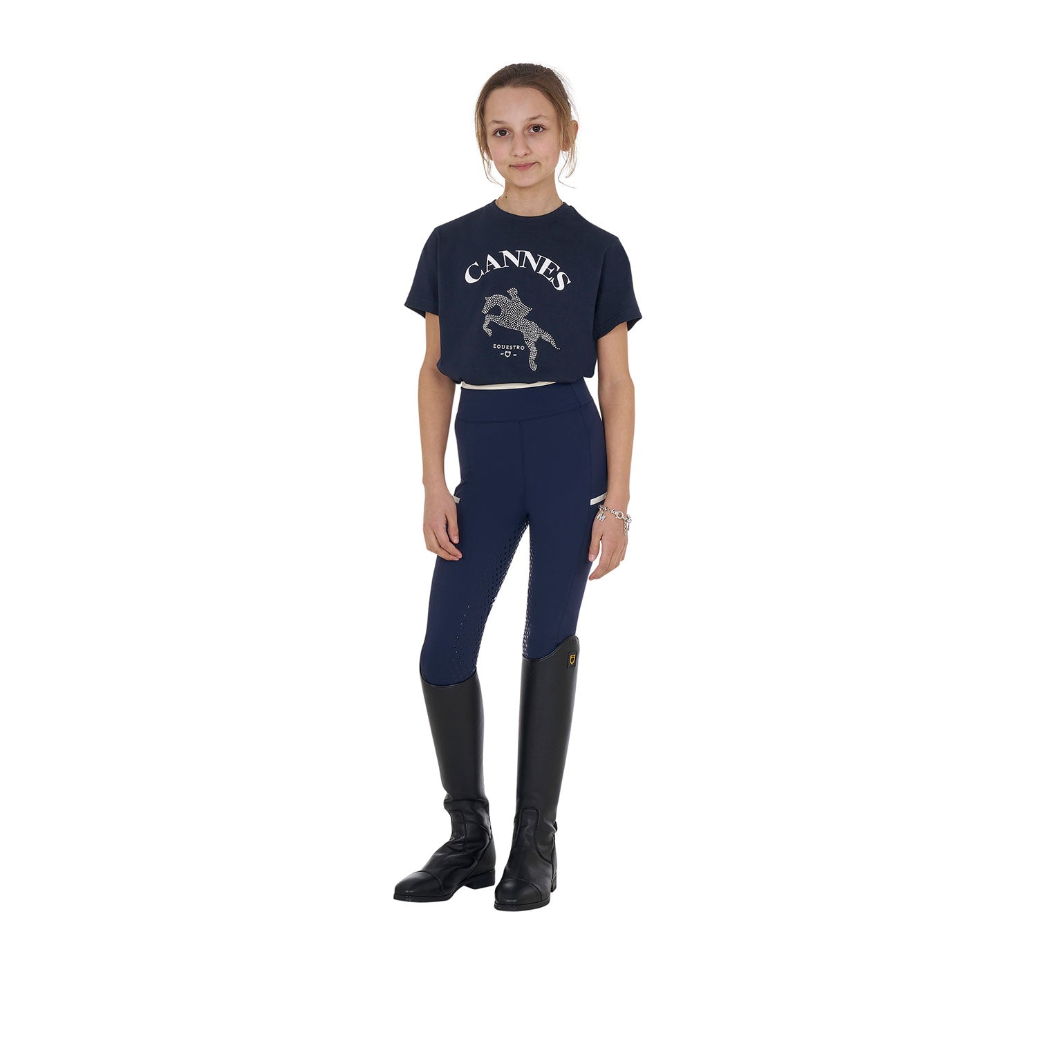 Equestro Girls' Cannes Cotton T-Shirt With Rhinestones - Blue / 10 Years ist auf Lager und wird versandt, sobald es wieder verfügbar ist