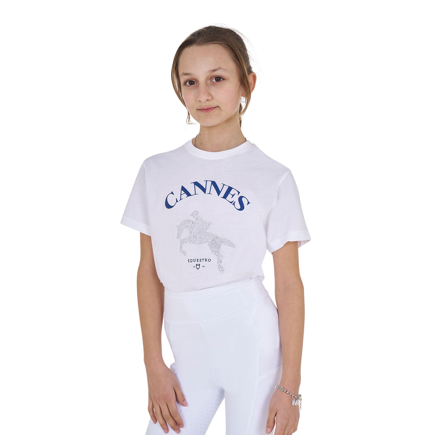 Equestro Girls' Cannes Cotton T-Shirt With Rhinestones