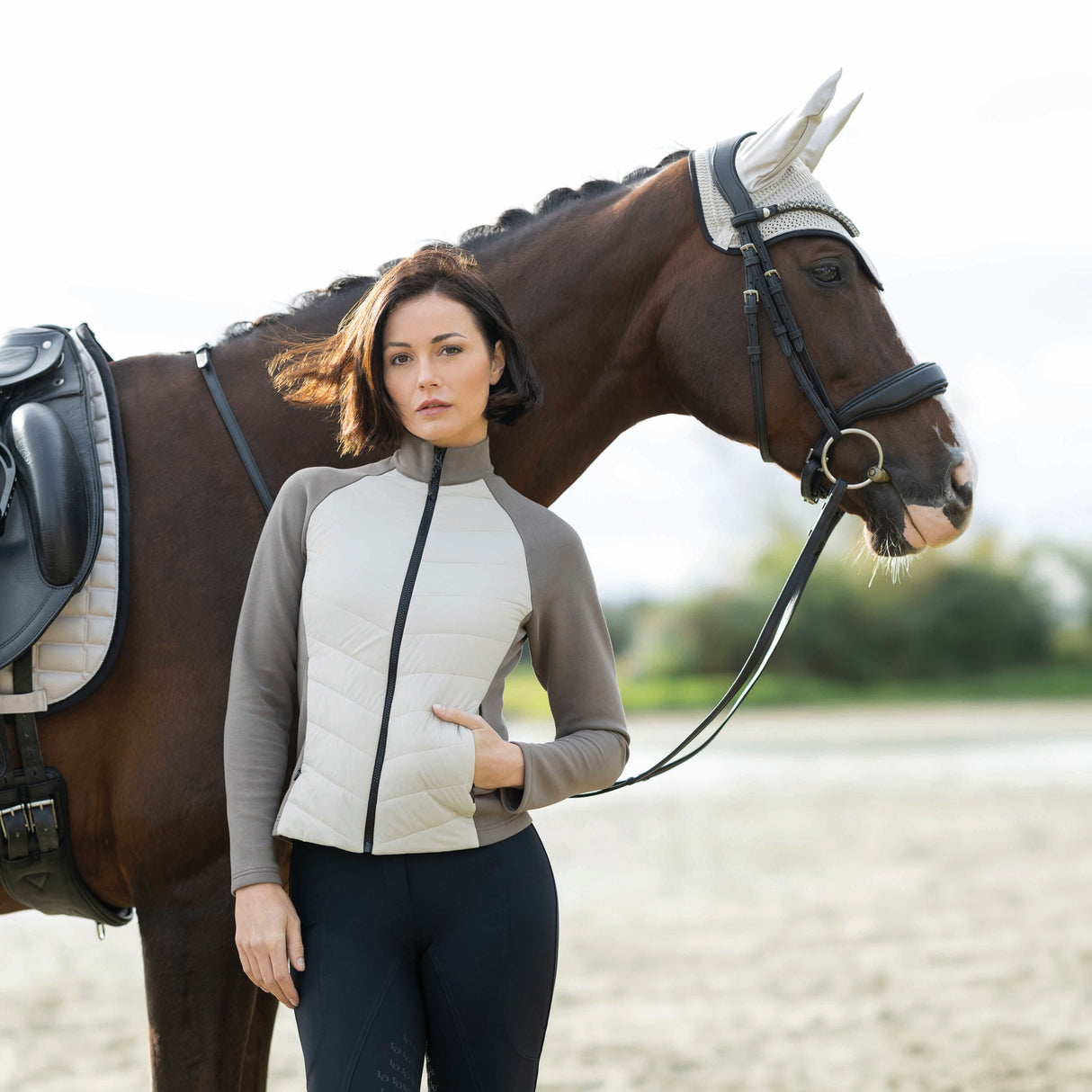 The quilted jacket Amalfi by Lauria Garrelli combines exclusive design with first-class functionality. Thanks to its breathable material mix, it offers optimum comfort, while the fashionable quilting ensures a stylish look. Elasticated side inserts guarantee a perfect fit and maximum freedom of movement - ideal for sporting activities and everyday life in the stable. The practical two-way zip allows for individual adjustment and the stand-up collar provides reliable protection against wind and weather. Two front pockets offer space for small essentials.