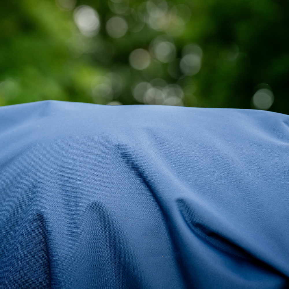 Designed for unrestricted movement, this blanket features a V-Front Closure to reduce pressure on the shoulders, front leg arches for enhanced mobility, and three crossed surcingles for a secure and adjustable fit. The waterproof tail flap and PVC wipe-clean tail cord provide additional protection from the elements.