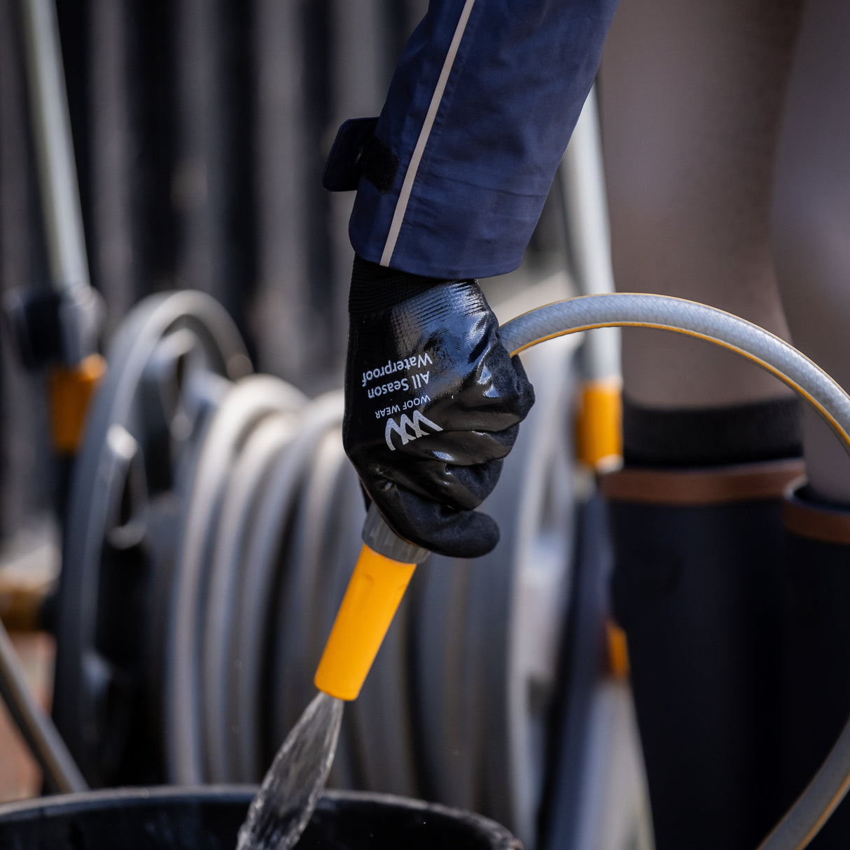 The nitrile material ensures superior protection against water, oils, and dirt, while offering flexibility and comfort. This glove is perfect for equestrians who need a dependable, all-weather glove for daily tasks in the stable or out in the field.