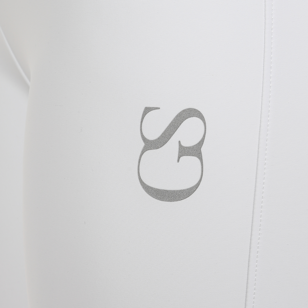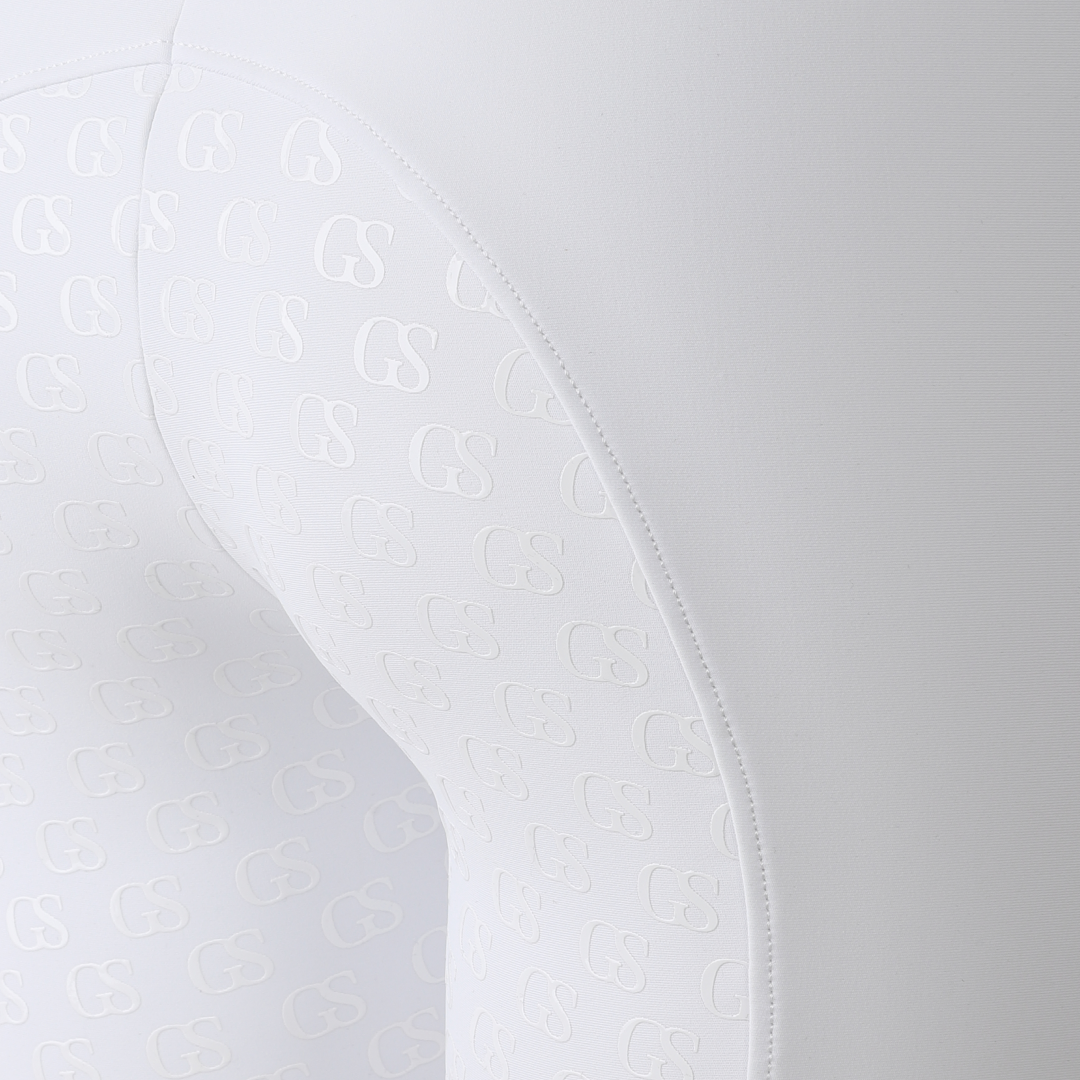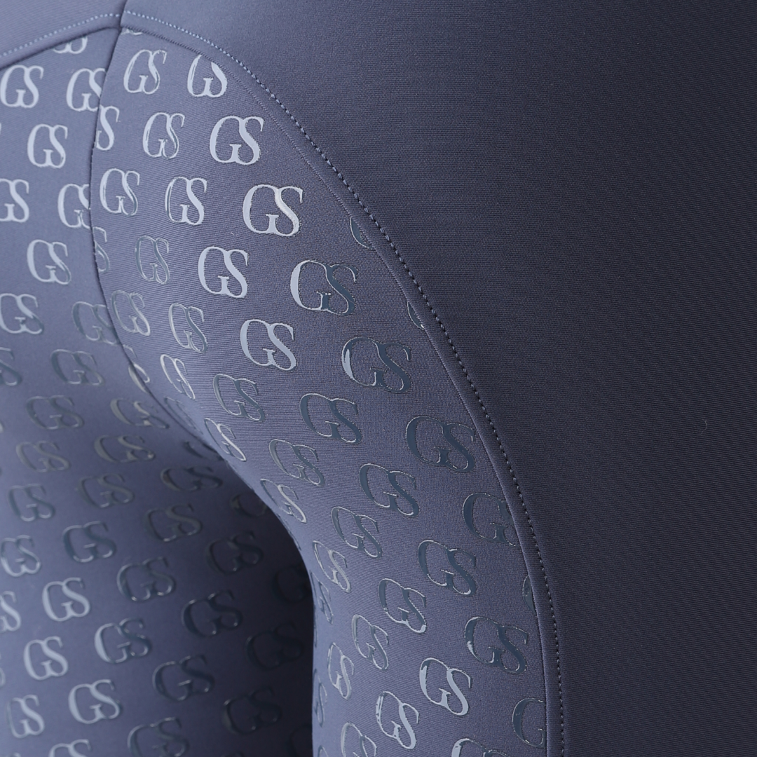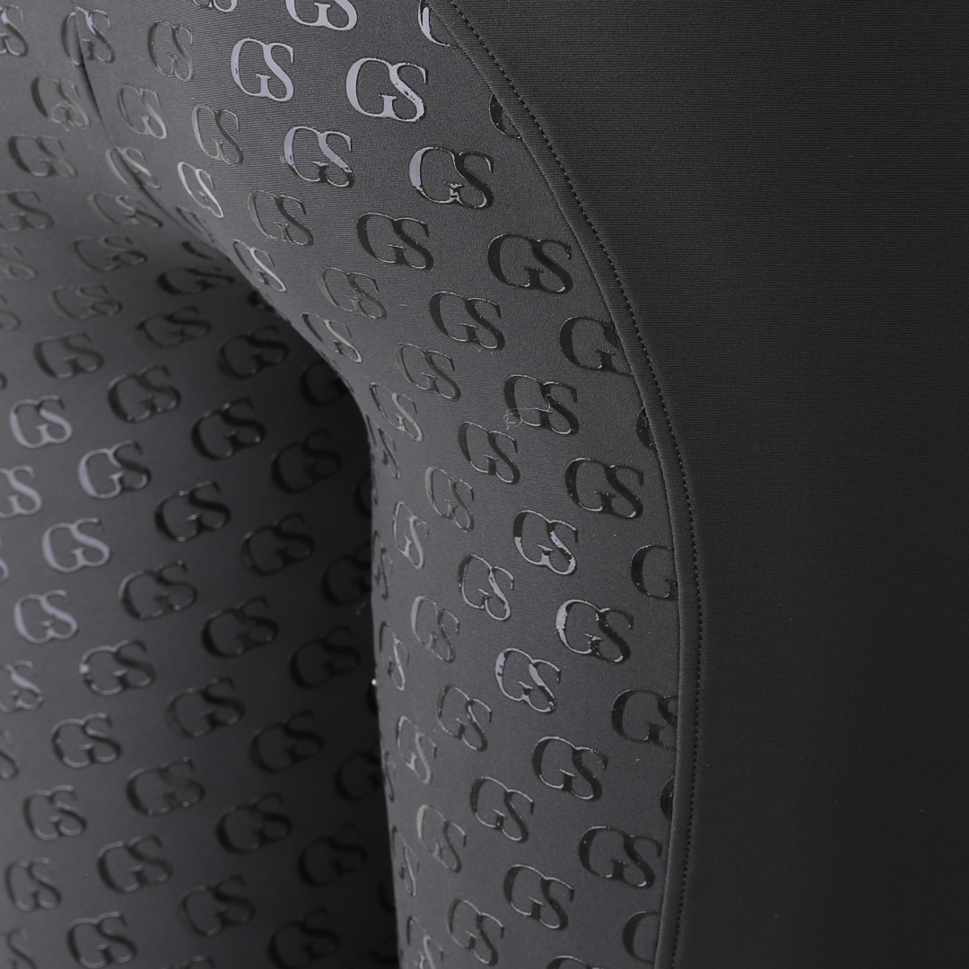 Der Silikongriff mit „GS“-Muster ist neu in der GS Equestrian-Reihe und bietet ein stilvolles Aussehen und ist gleichzeitig effektiv. Da es sich um eine Vollbesatz-Reithose handelt, hat das Silikon die gleiche Farbe wie die Reithose und fügt sich so in das stilvolle Design ein, da es einen großen Teil der Reithose bedeckt. Darüber hinaus befindet sich auf dem linken Bein ein GS-Logo mit reflektierendem Hinweis.
