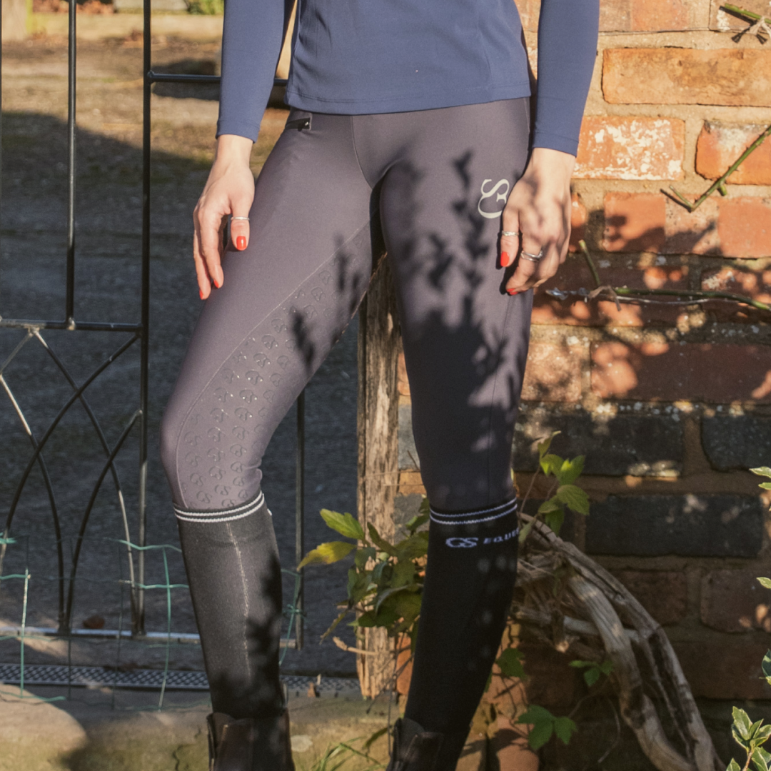Die Unity Riding Tights bestehen aus einer Kombination aus Polyester und Elasthan und eignen sich perfekt zum Reiten sowie zum Tragen im Garten oder sogar beim Erledigen von Besorgungen. Das Material verfügt über 360-Grad -Stretch, was eine einfache Bewegung ermöglicht, und mit einem dicken, bequemen Bund bleiben die Unity Riding Tights beim Tragen an Ort und Stelle. Diese Reitleggings bestehen aus dickerem Material als die älteren Modelle der GS Equestrian-Kollektion, die Flexibilität wird dadurch jedoch nicht beeinträchtigt.