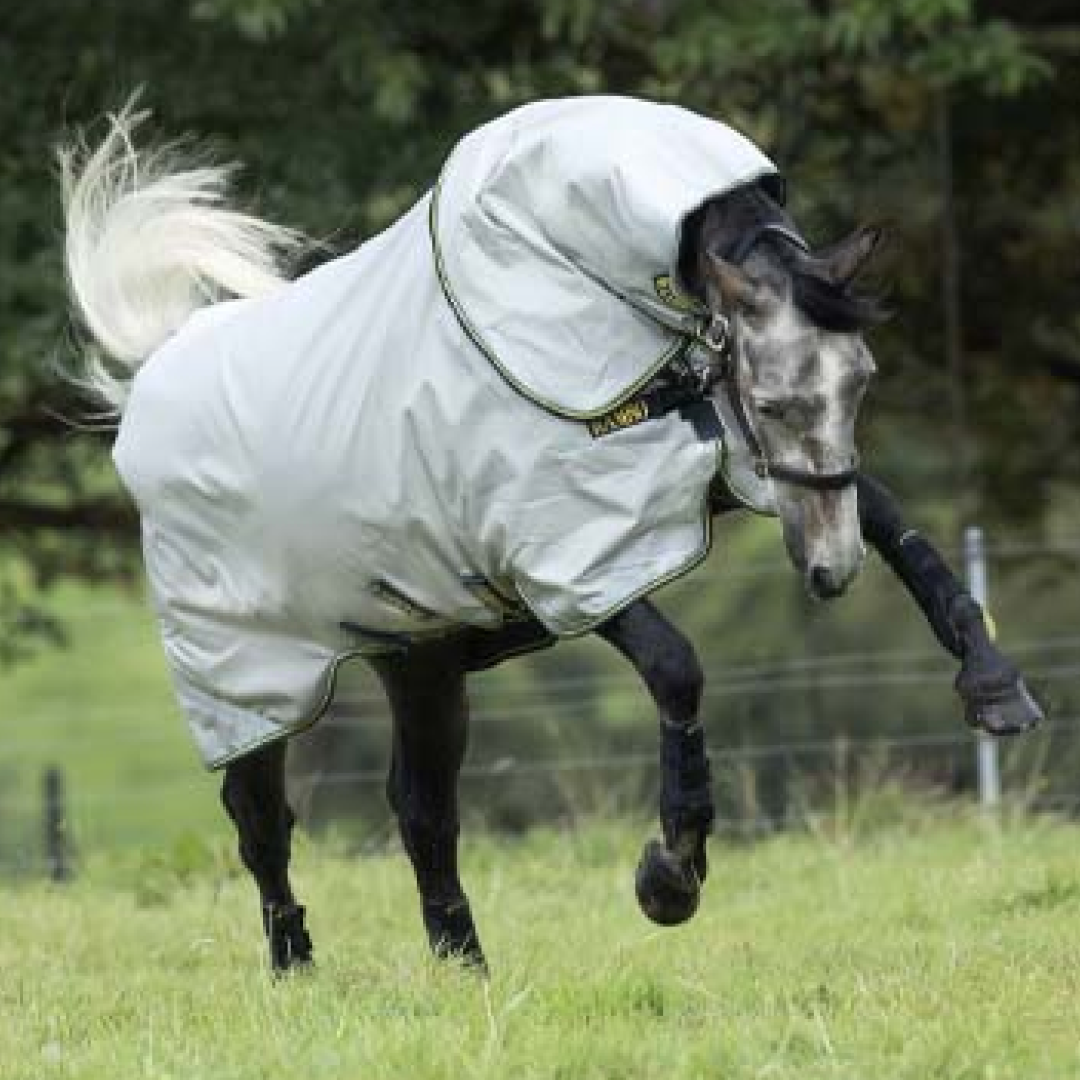 Eine Weidedecke fungiert als wasserdichte Isolierschicht und hilft, die Kondition bei kaltem Wetter aufrechtzuerhalten. Beachten Sie jedoch, dass sich die Bedingungen innerhalb kurzer Zeit ändern können. Stellen Sie immer sicher, dass sich Ihr Pferd jederzeit wohlfühlt.