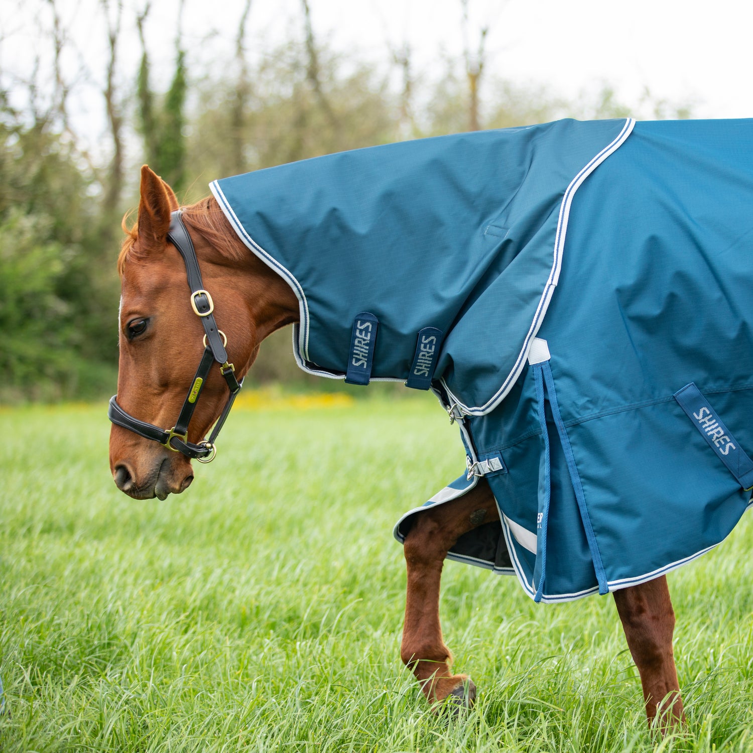 The Highlander Original 50g turnout rug neck cover keeps the air flowing between the horse and the rug, maintaining comfort on mild wet days. The neck cover fits to D-rings on a standard neck rug and fastens securely with touch close straps.