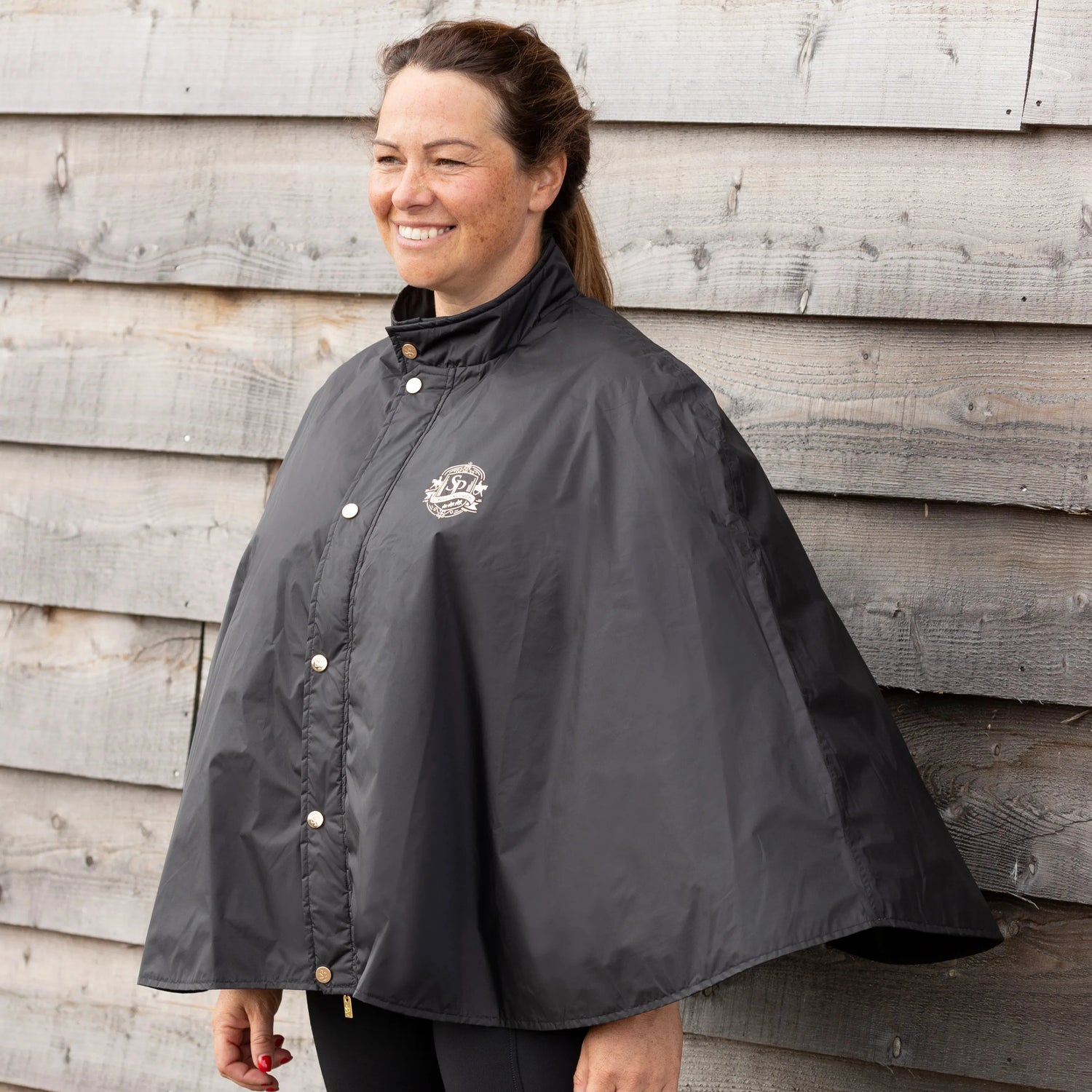 A fully waterproof (10,000mm) and breathable (10,000mm) rain cape, ideal for popping over your show jacket at competitions when the weather takes a turn for the worst. Quick and easy to use, with hidden straps to prevent it from blowing around, we think this is an essential wardrobe must-have! Finished with signature gold hardware and branding.