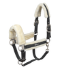 Quality halter with soft padding in synthetic fur on headpiece, noseband and cheekpieces. Easily adjustable at chinstrap and on both sides of headpiece. With matt silver-coloured fittings and silver-coloured Waldhausen logo.