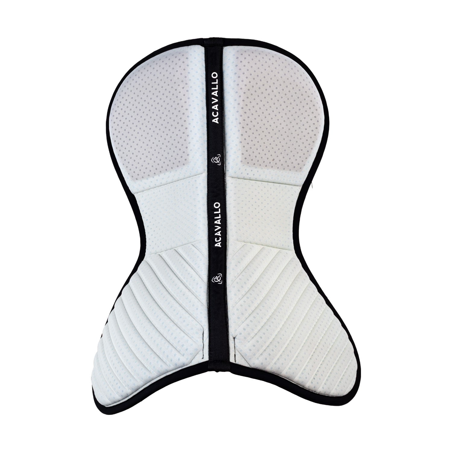 The Acavallo Zero Impact Half Pad with Rear Riser is specially designed to support horses with low backs or saddles that tend to slip. Its built-in rear riser promotes even weight distribution, improving both comfort and stability. Made from 16 mm of high-density memory foam, this pad effectively absorbs shocks and reduces pressure. With breathable perforations and silicone inserts, it stays firmly in place during demanding rides. Enhance your horse’s comfort and performance with this expertly crafted saddle pad.