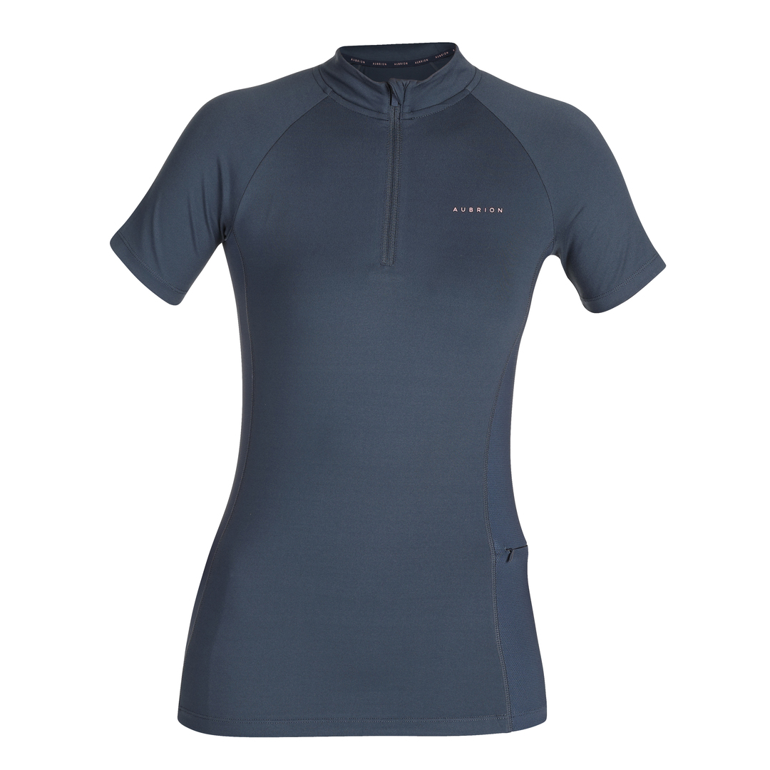 Le Shires Aubrion dames revivre la couche de base à manches courtes Offre des performances et du support au cavalier actif. Écrémage corporel pour une deuxième sensation de peau, une technologie de gestion de l'humidité légère et des panneaux latéraux ventilés mettent le corps à l'aise. UPF 50+ protège la peau des rayons nocifs du soleil. Construction de la manche Raglan pour une amplitude de mouvement accrue, 1/4 de cou zip pour plus ou moins de ventilation, poche zip latérale pour la garde des éléments essentiels en toute sécurité.