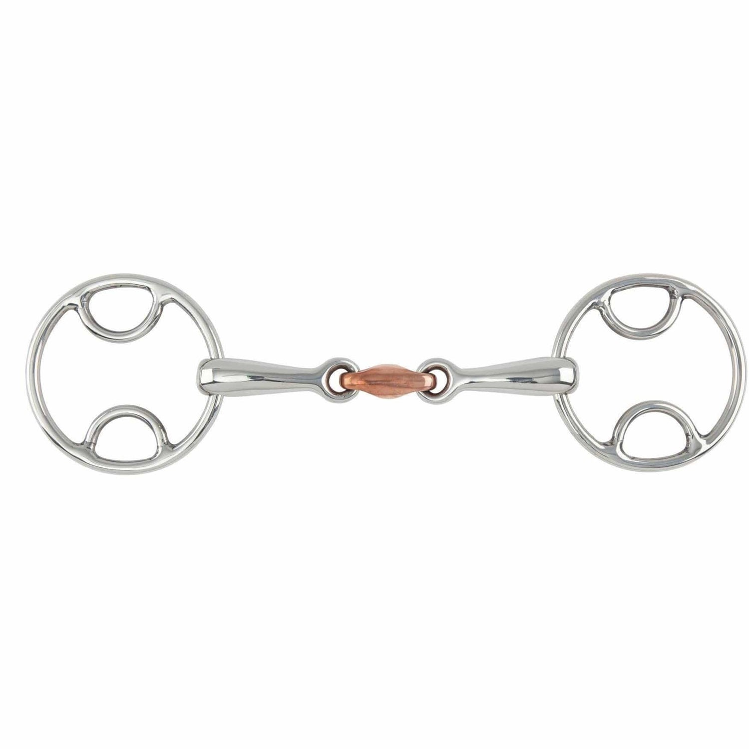 La mèche biseautée permet un léger effet de levier avec une pastille en cuivre pour faciliter la salivation. À partir d'une taille de 5,25", la taille de l'anneau augmente pour garder le mors proportionné aux chevaux plus grands.
