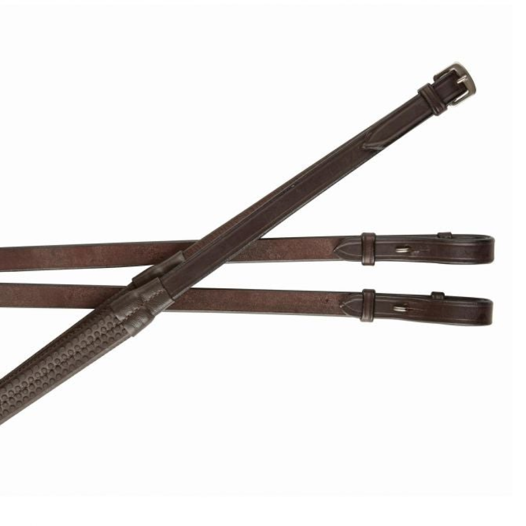 - Ces rênes ont un insert en cuir européen de la meilleure qualité sous le caoutchouc.
