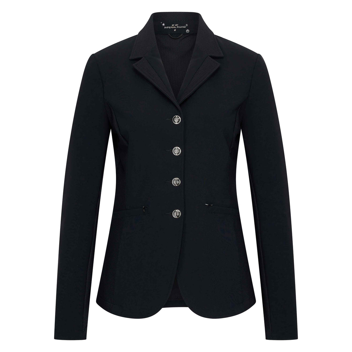 Introducing the Imperial Riding Air Mesh Competition Jacket - a sleek and practical blazer designed for high-level equestrian competition. With its covered zipper and four branded metal buttons, this 4-way stretch fabric jacket offers both style and functionality. The addition of mesh allows for breathable comfort, while the Rhinestone accents add a touch of elegance. Stay comfortable and confident in the ring with this competition jacket.