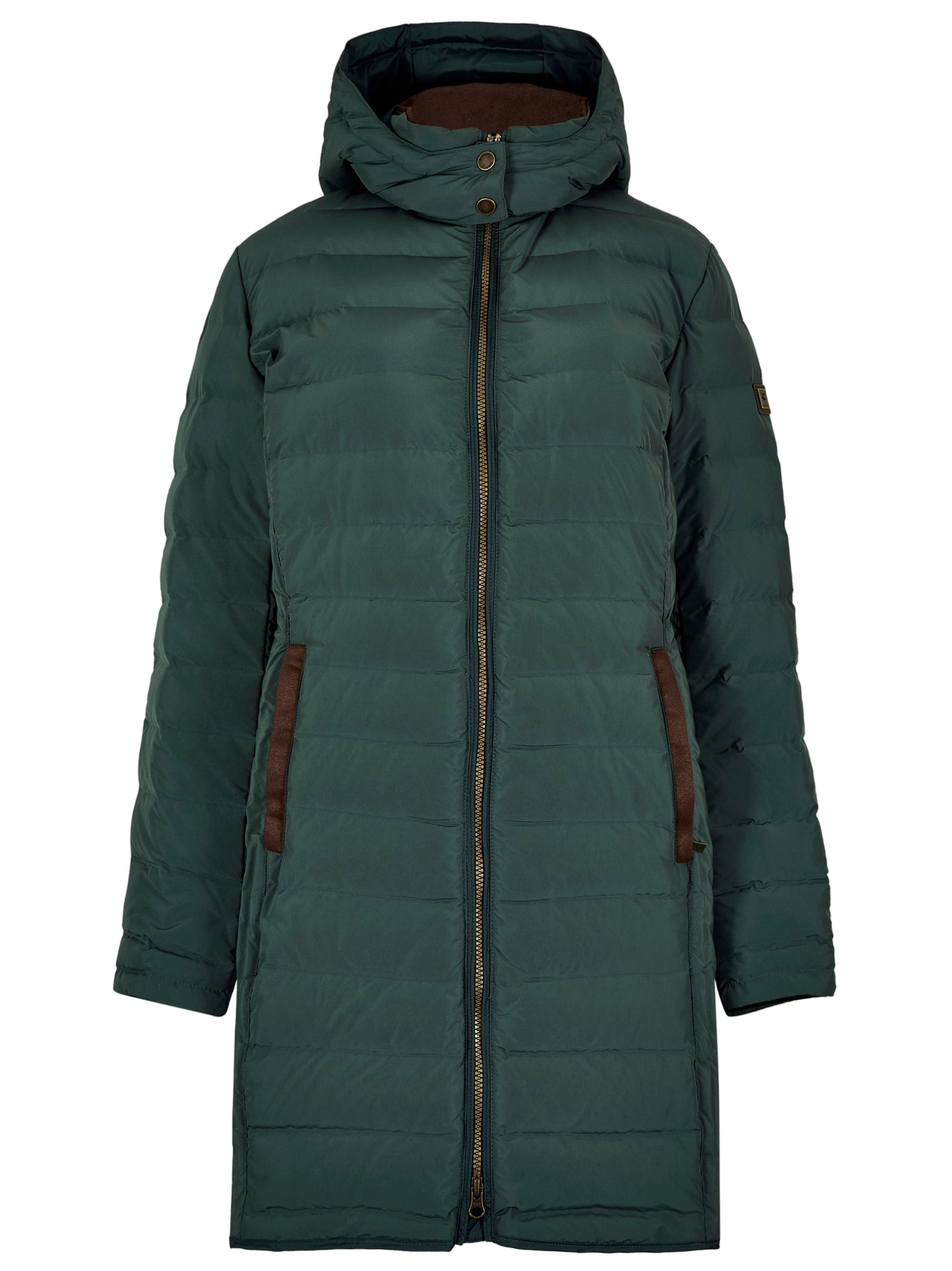 Hunker down in the Dubarry Ballybrophy three-quarter length coat for serious seasonal warmth. Filled with ethically sourced 90% down and 10% feather, it has a handwarmer pockets, a detachable hood and a full-length two-way zip, making a snuggly, winter weather beater ideal for weekend errands and walks with the dog. Match with some Dubarry country boots for head-to-toe toastiness.