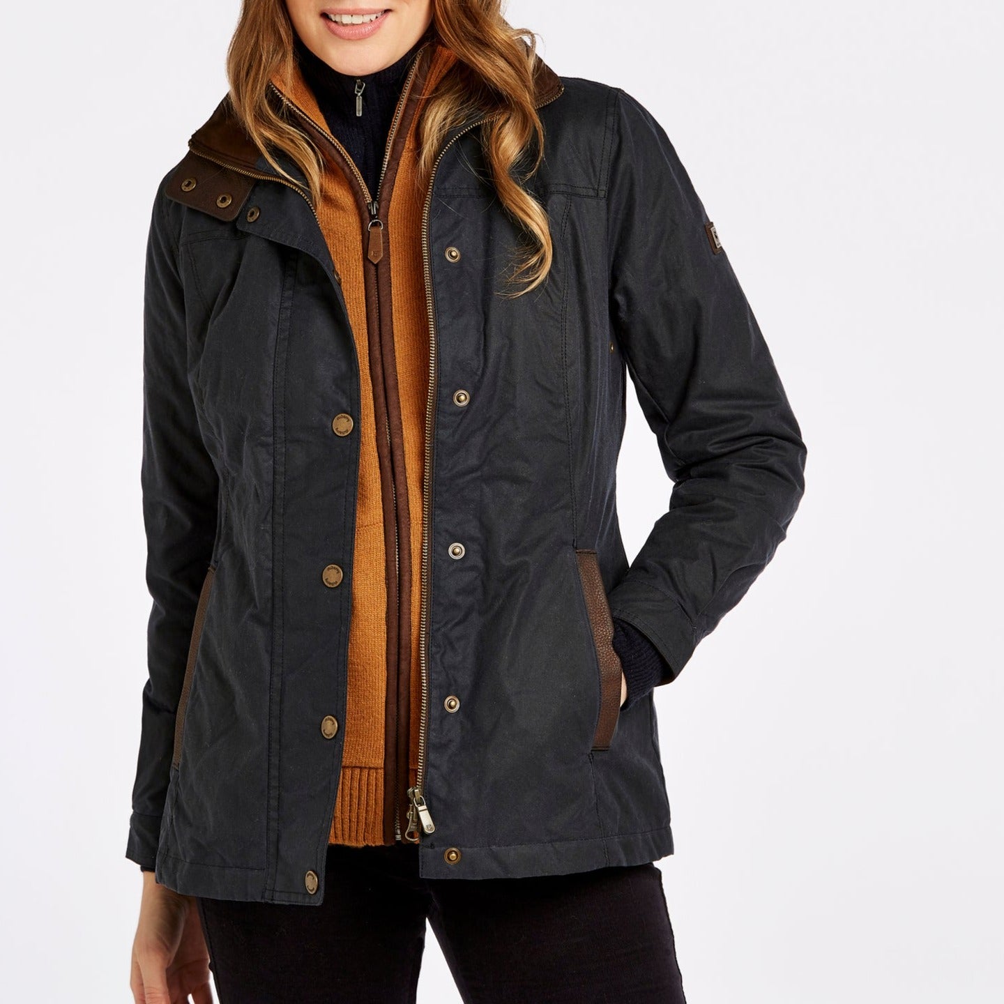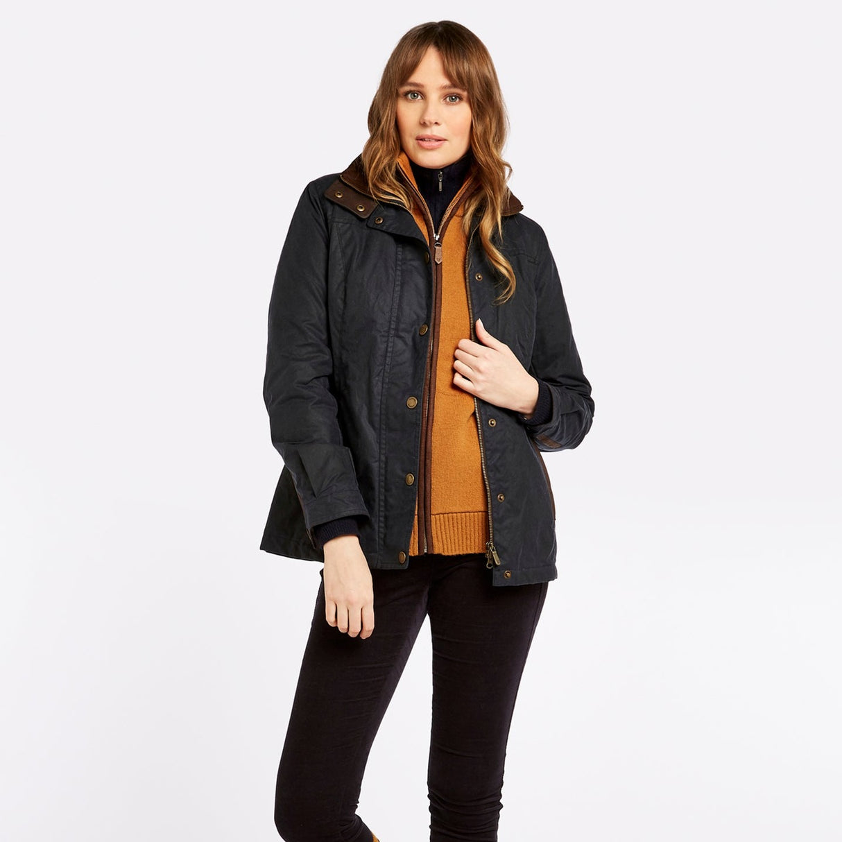 The waxed cotton Dubarry Mountrath is a warm winter jacket with PrimaLoft fill and water repellent finish - perfect for braving wet and windy days in. The leather trim and branded stud poppers lean into a traditional, elegant aesthetic while the stud-fastened faux suede collar and soft, flattering tailoring add a slick urban flair to this comfortable country style.