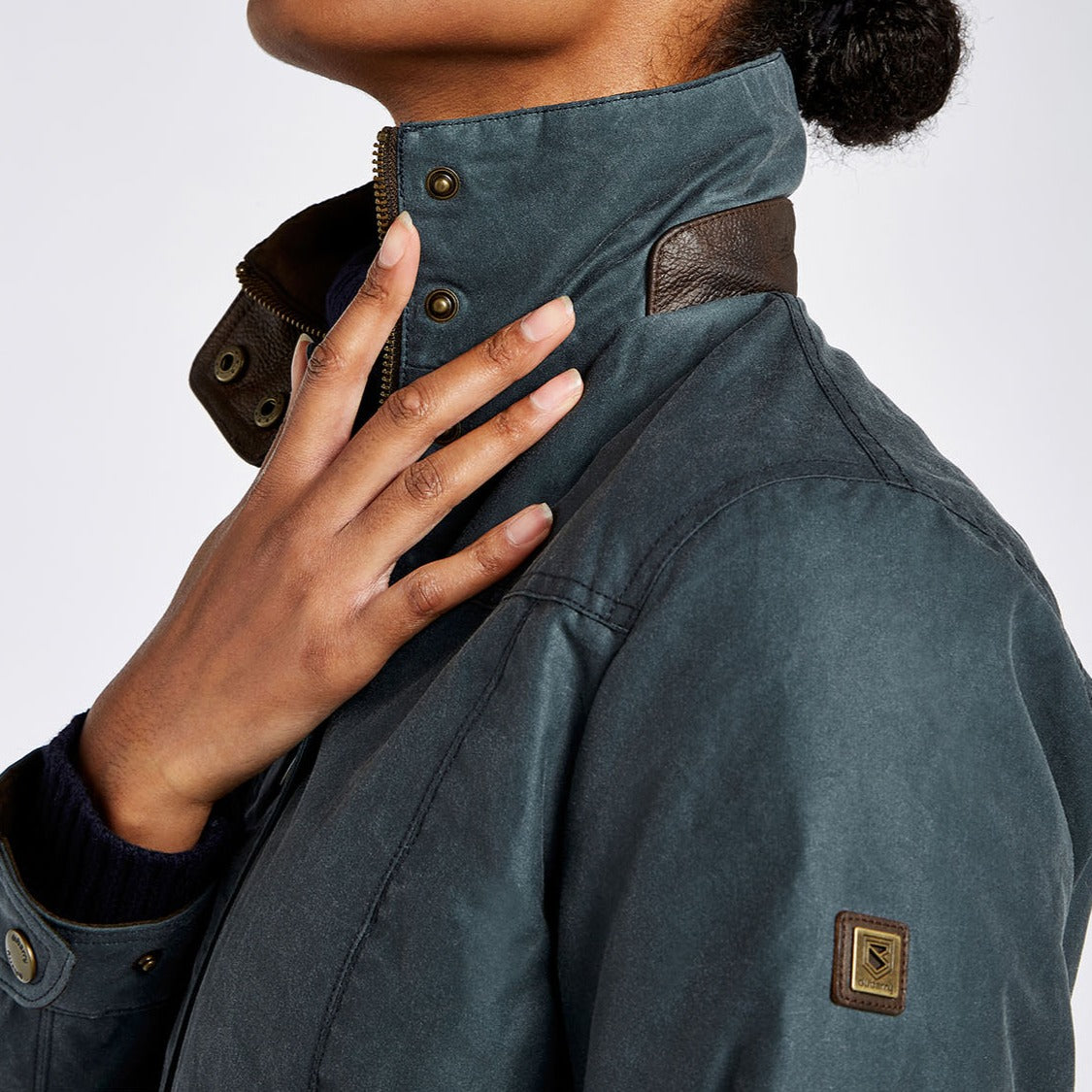 - Leather and metal Dubarry badge on sleeve.
