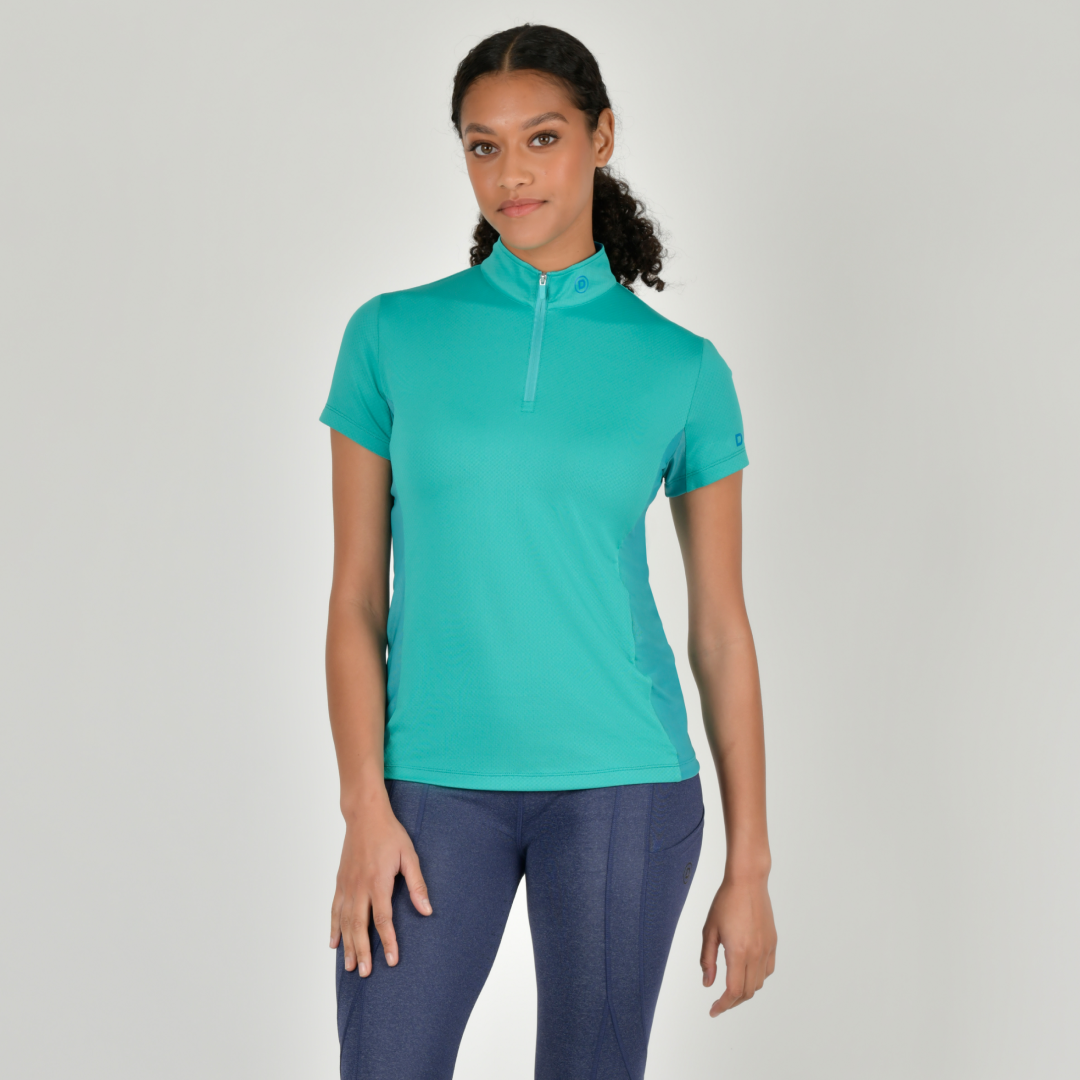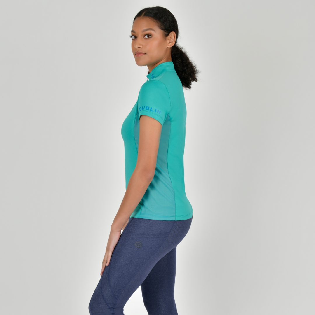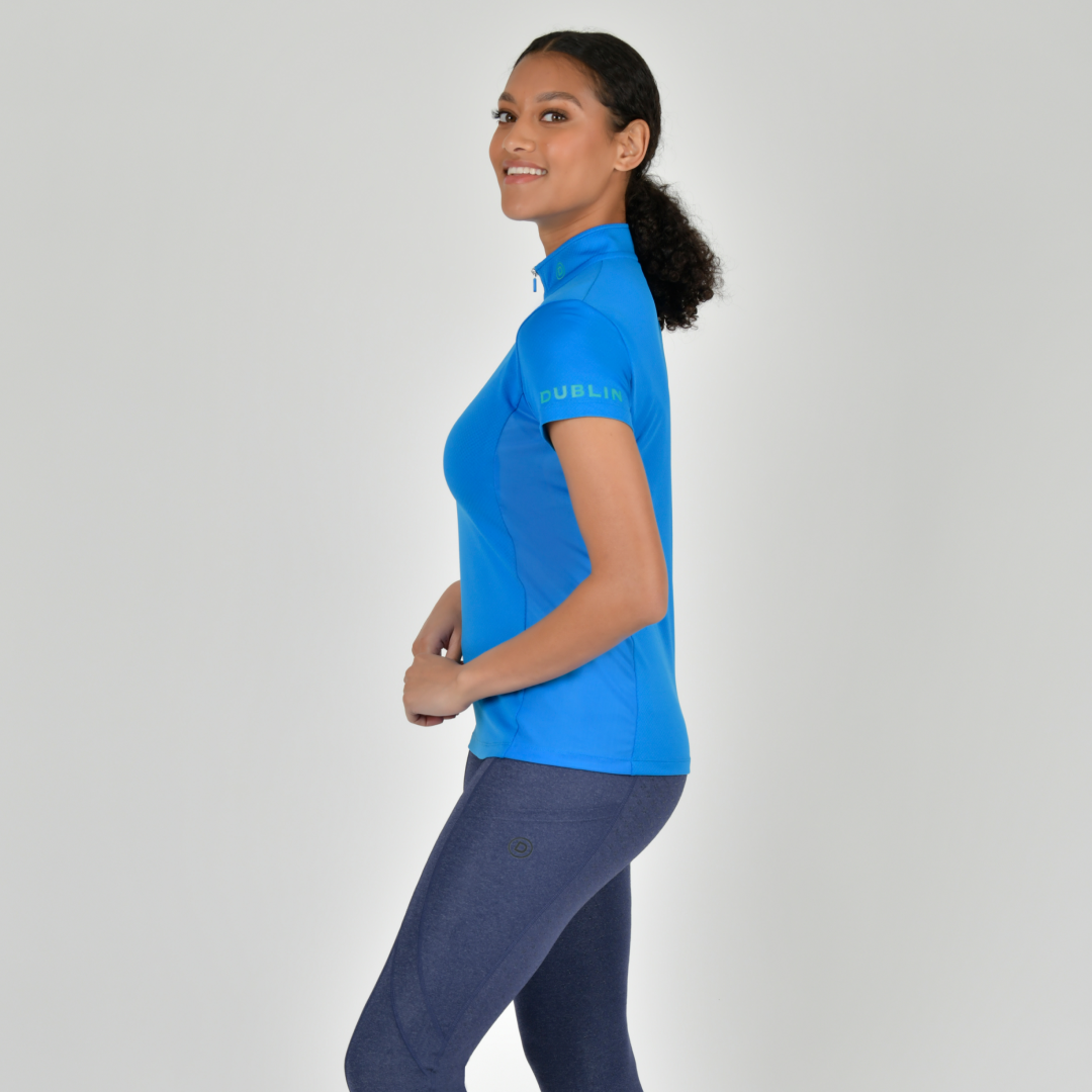 Le haut à manches courtes Dublin Airflow pour femme est un excellent haut ou couche de base pour l'entraînement quotidien, doté à la fois d'une protection solaire et de la technologie Comfort Dry pour un confort toute la journée, les panneaux latéraux en mesh offrent une ventilation supplémentaire ainsi qu'un look flatteur. Ce haut à manches courtes est doté d'une patte de boutonnage 1/4 zippée avec col montant pour une protection supplémentaire du cou, d'une marque contrastée sur la manche et à l'intérieur du col. Un favori pour les saisons les plus chaudes.