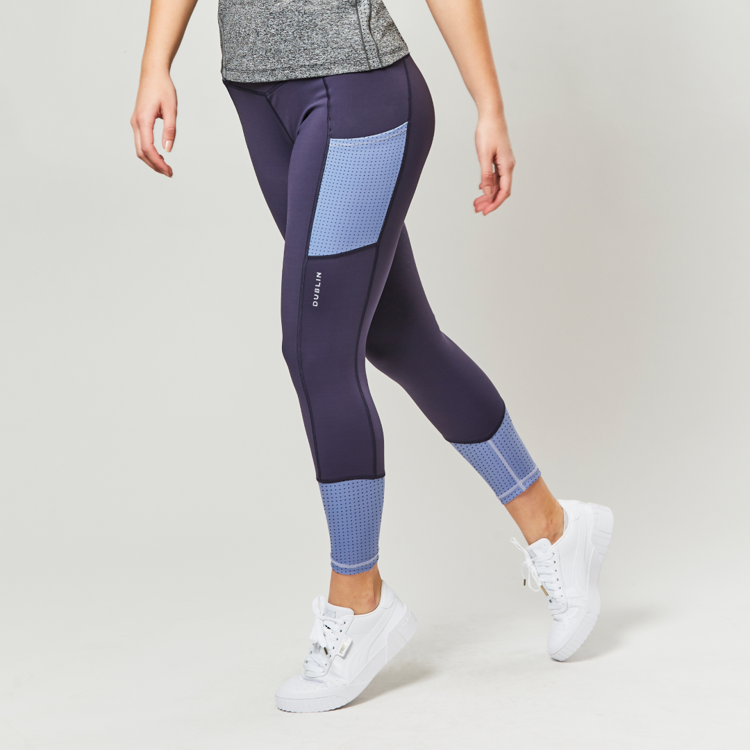 Les collants Dublin Power Performance Mid Rise Color Block pour femmes sont conçus de manière athlétique avec un tissu en polyester extensible et des caractéristiques techniques qui incluent la technologie Comfort Dry. Les panneaux color block modernes offrent un look athlétique, avec des poches latérales pratiques pour téléphone et un revers en maille laser, c'est-à-dire un tissu perforé. Doté de poches arrière zippées pour ranger vos essentiels et d'un siège imprimé en silicone Ezi-Grip Gel sans couture pour plus de stabilité.