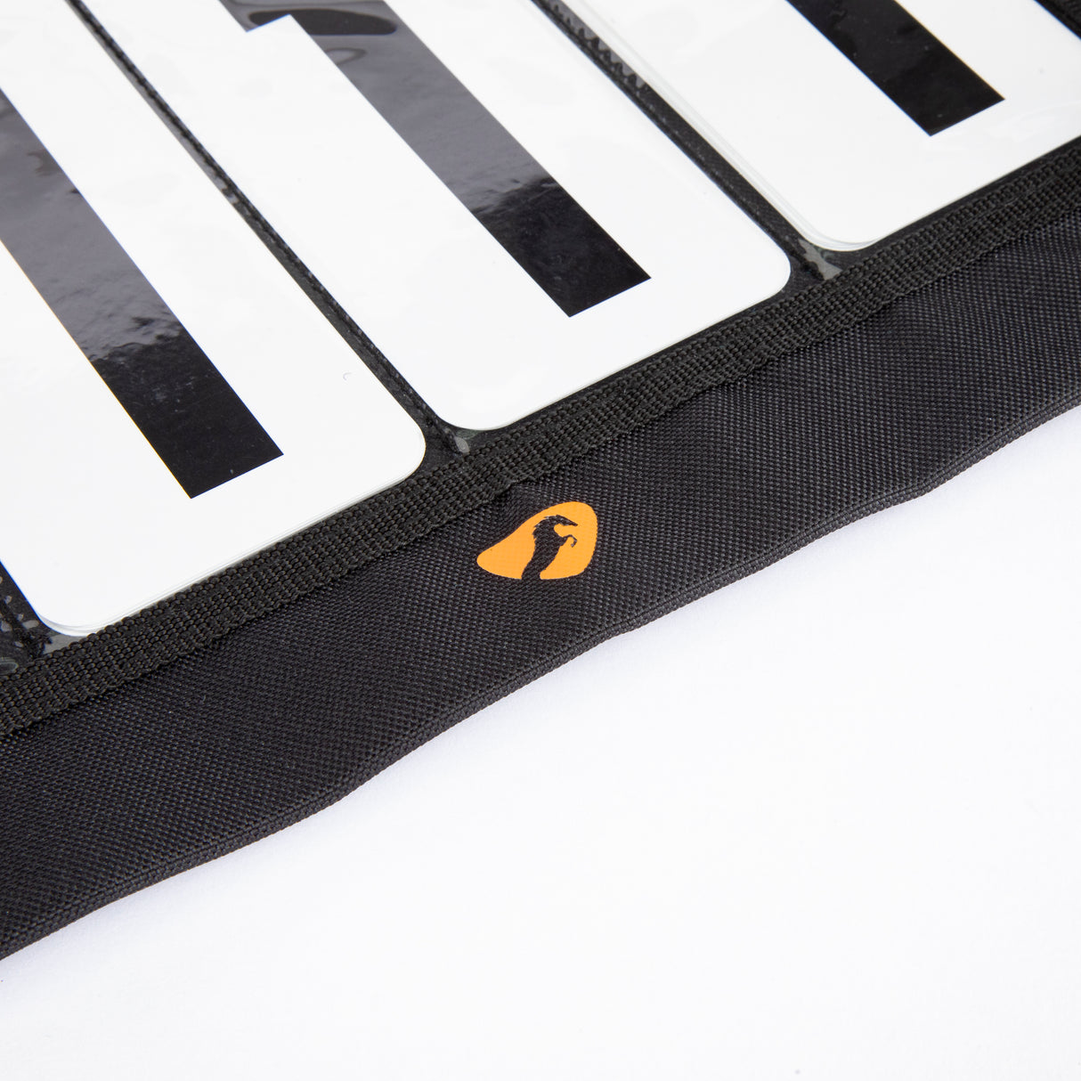 Robust number cards are inserted at the reverse of the display via touch close flaps. Adjustable shoulder straps allow a snug and secure fit. At the waist are elastic straps, one with a slider and a quick-release buckle for easy entry and securing. Aubrion prints to the front and back.