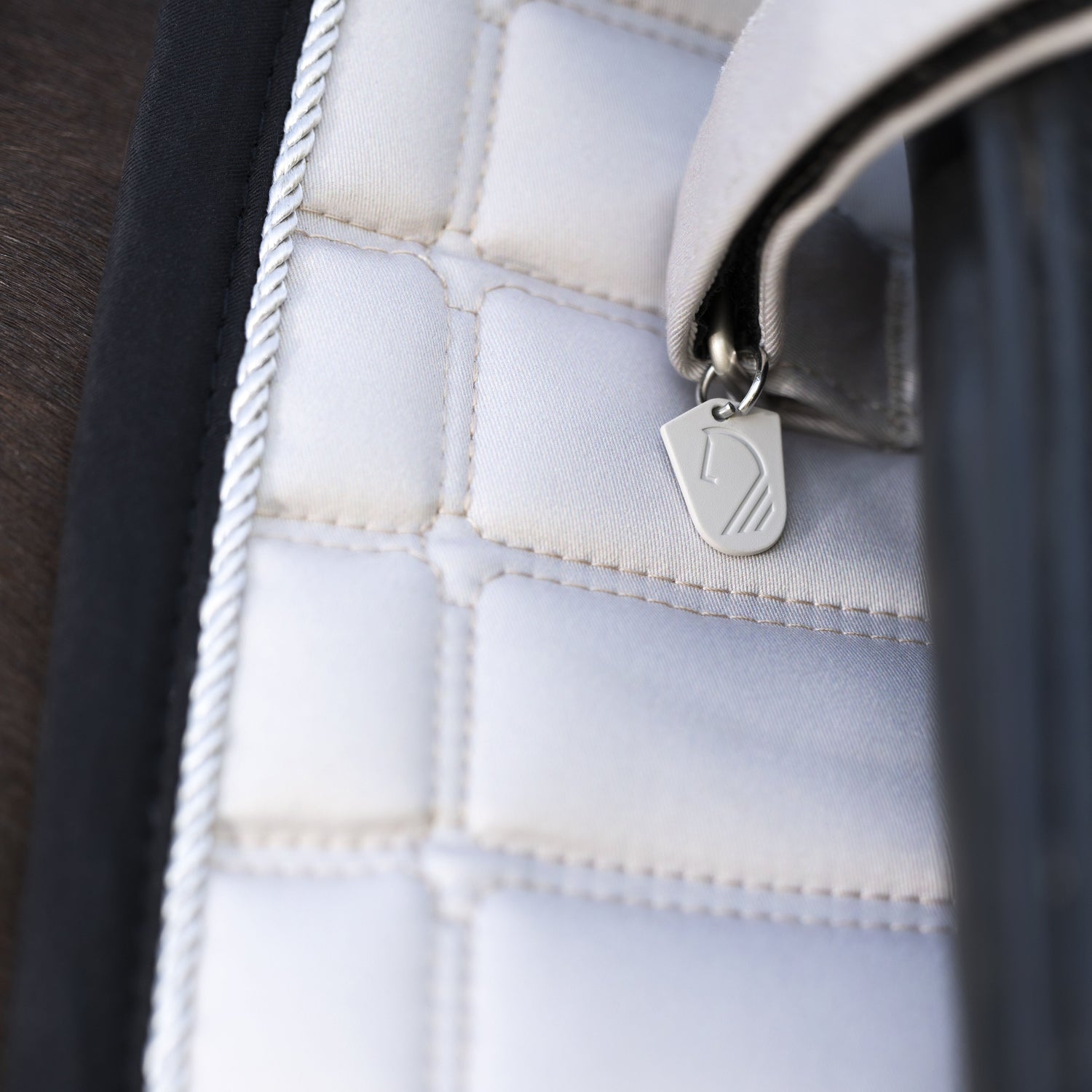 As an expert in the equestrian industry, the HKM Saddle Cloth -Amalfi- by Lauria Garrelli stands out for its exclusive look and sophisticated functionality. The high-quality functional knitted fabric quickly wicks away moisture, ensuring a comfortable and non-slip fit. Its anatomically adapted shape and removable loops provide flexibility, while the elegant quilting and contrasting details add a touch of elegance.