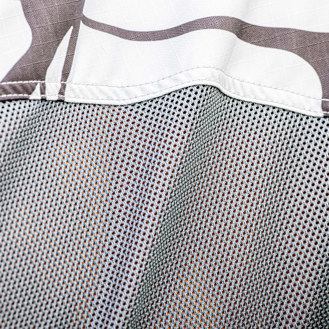 - Construction hybride avec côtés en maille polyester. Offre une respirabilité maximale pour éviter la surchauffe.