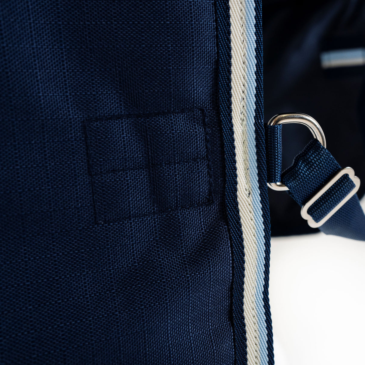 This blanket comes with a detachable neck cover. Straight front closure with front leg arches for freedom of movement. The anti-static, anti-bacterial, shine enhancing Polyester lining prevents rubbing and promotes a healthy shiny coat. Liner loops offer optimum versatility.
