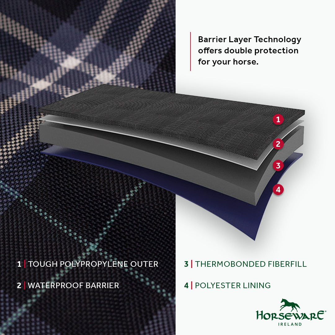 Horseware Ireland Rhino Plus avec Vari Layer Medium 250 g - Carreaux bleu marine/bleu sarcelle / 5'6 est en rupture de stock et sera expédié dès qu’il sera de retour en stock.