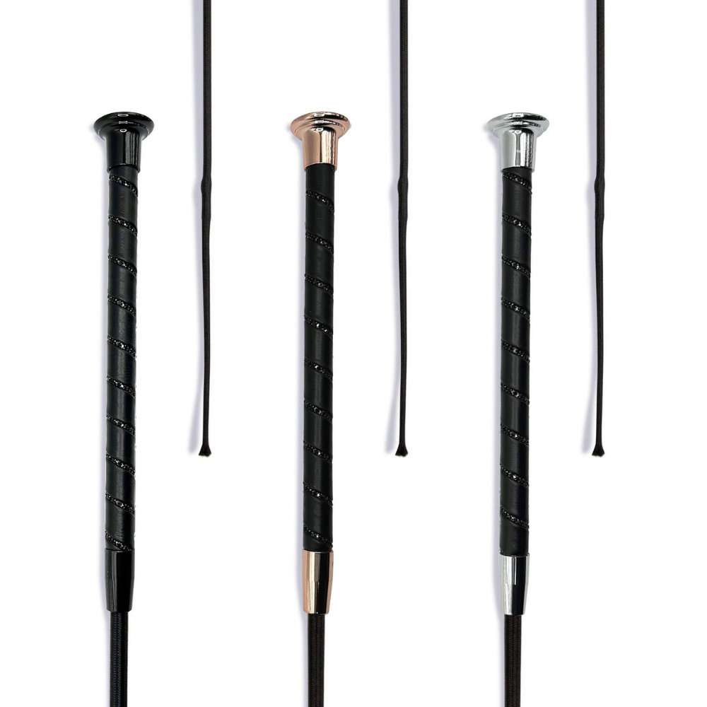 KM Elite's own Dressage Whip with Black Crystal Spiral is an eye-catching whip perfect for competition use or for training at home.
