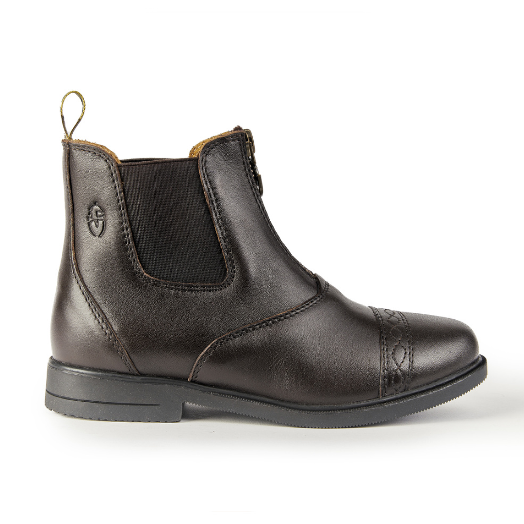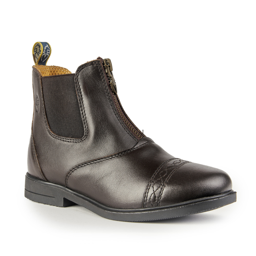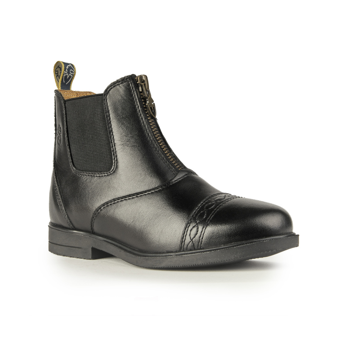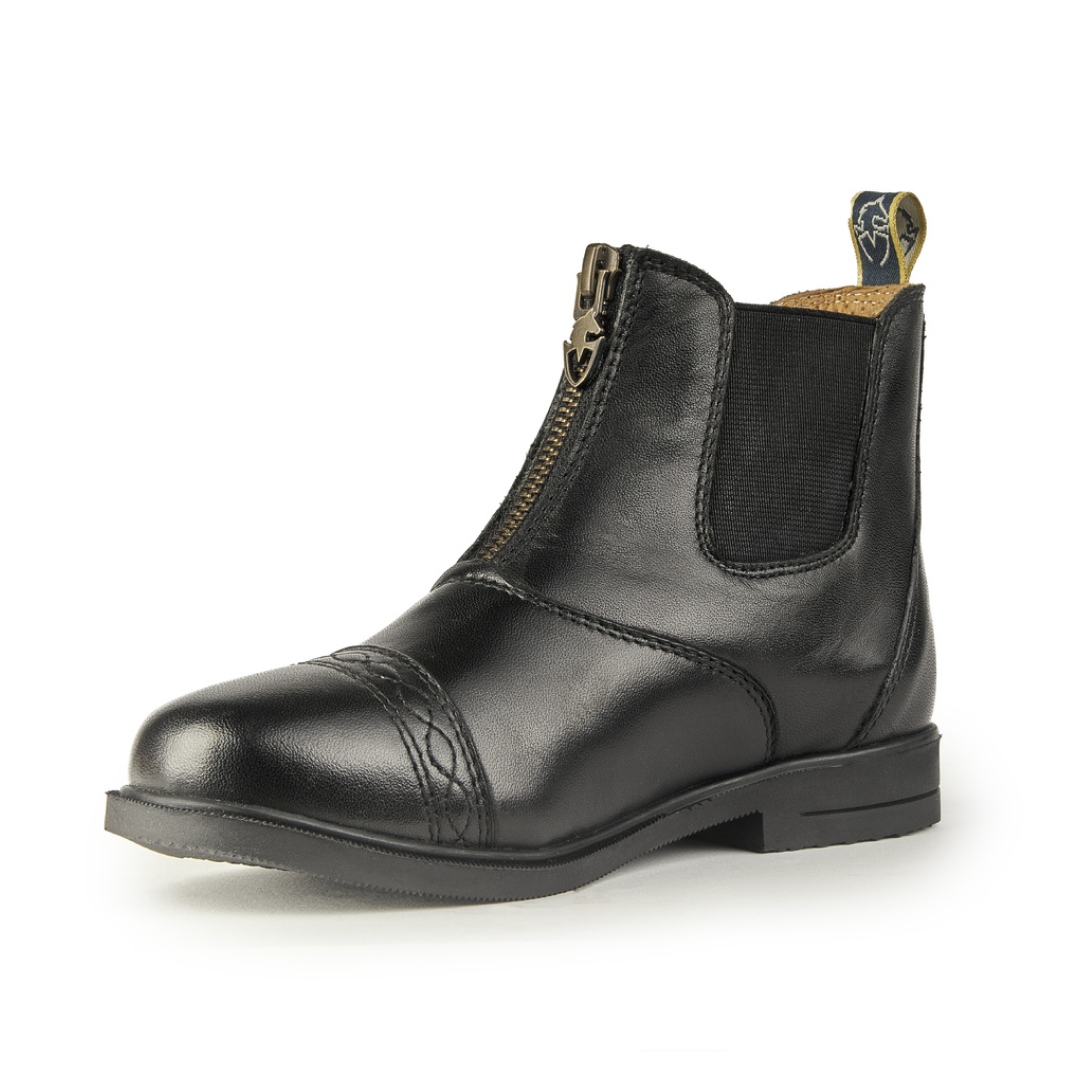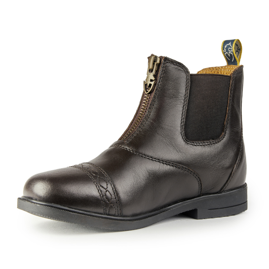 Les bottes Materia pour enfants Shires Moretta embelliront l'équitation à poney, ces bottes de paddock en cuir conviennent à tous les cavaliers et offrent un bon équilibre entre confort et stabilité. Les bottes Materia zippées sur le devant sont faciles à enfiler et ont un bout arrondi pour beaucoup d'espace. Les coutures Brogue sont élégantes et la finition polie très brillante résiste aux taches d'eau et un polissage rapide restaurera toute usure.