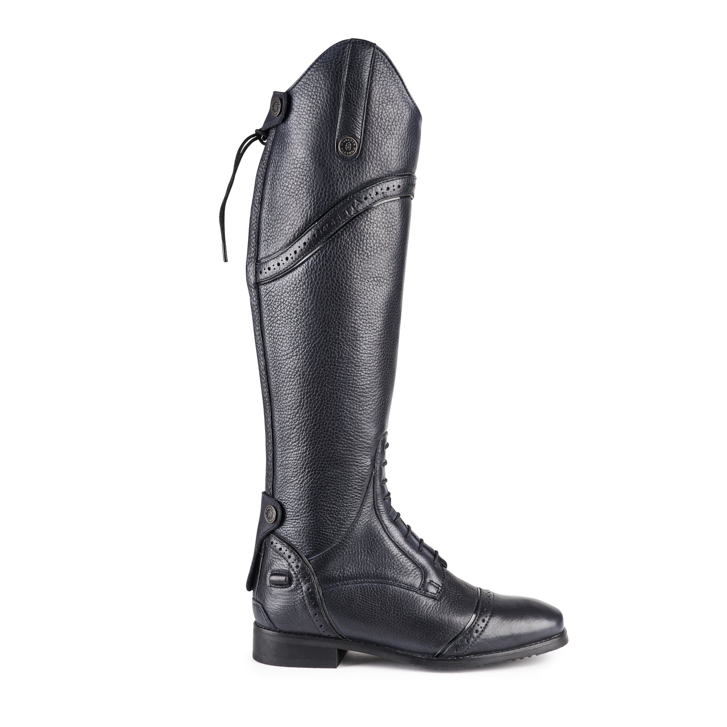 Les bottes d'équitation Shires Moretta Constantina sont des bottes d'équitation longues de qualité supérieure avec un ajustement haut de gamme et des faux lacets. Les bottes d'équitation Moretta Constantina sont confectionnées en cuir pleine fleur doux au toucher. Doublures entièrement en cuir. Détail en fausse dentelle avec panneaux extensibles pour un ajustement sur mesure. Fermetures éclair YKK à l'arrière. Repose-éperons à poignée en cuir. Semelles ActiveFlex avec système de support d'impact. Semelles d'équitation Moretta en composite pour une adhérence optimale. Tiges en acier.