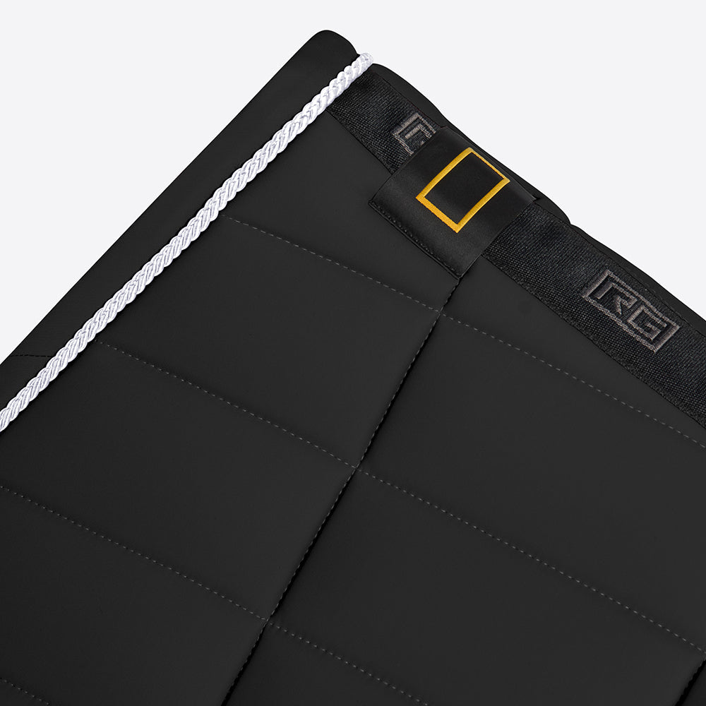 The Rider's Gene Jersey Jump Saddle Pad with Trim is designed to provide maximum comfort and performance during jumping competitions. Made from high-quality jersey fabric, this saddle pad ensures a perfect fit and protection for the horse. The contrasting trim adds a stylish touch, while the embroidered Rider's Gene logo gives a distinctive and professional look.