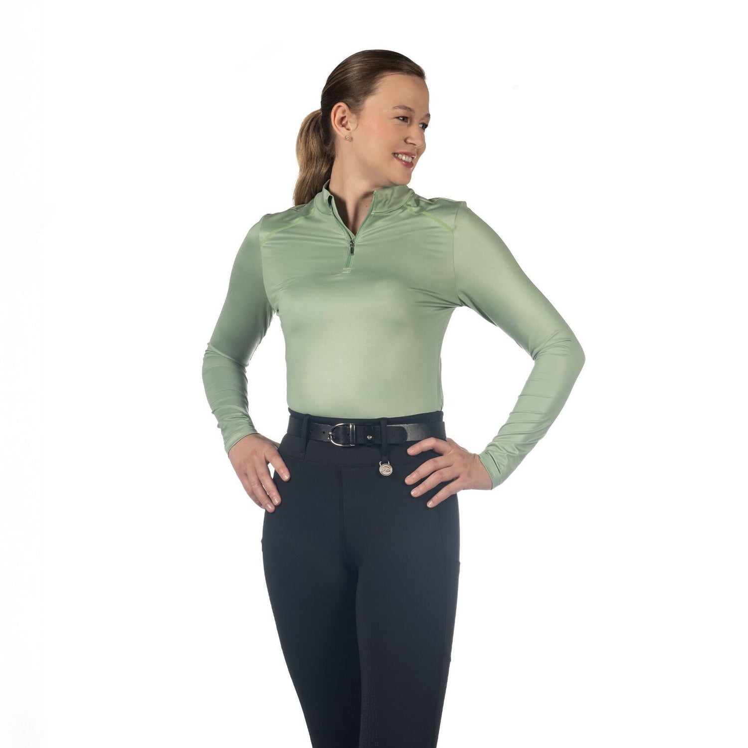 The HKM Ladies Functional Shirt -Summer Milano II- offers the perfect combination of comfort, functionality, and style for active female riders. With breathable and elasticated material, it provides optimum freedom of movement and a feminine fit. The practical zip on the stand-up collar makes it easy to put on and take off, while the silky feel adds a touch of luxury. Available in various colors.