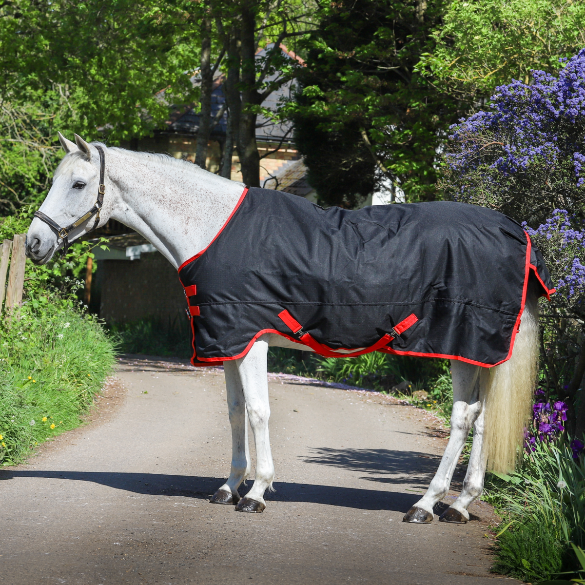 Cette couverture 100 % imperméable avec un garnissage de 100 g est idéale pour garder votre cheval au chaud et au sec.