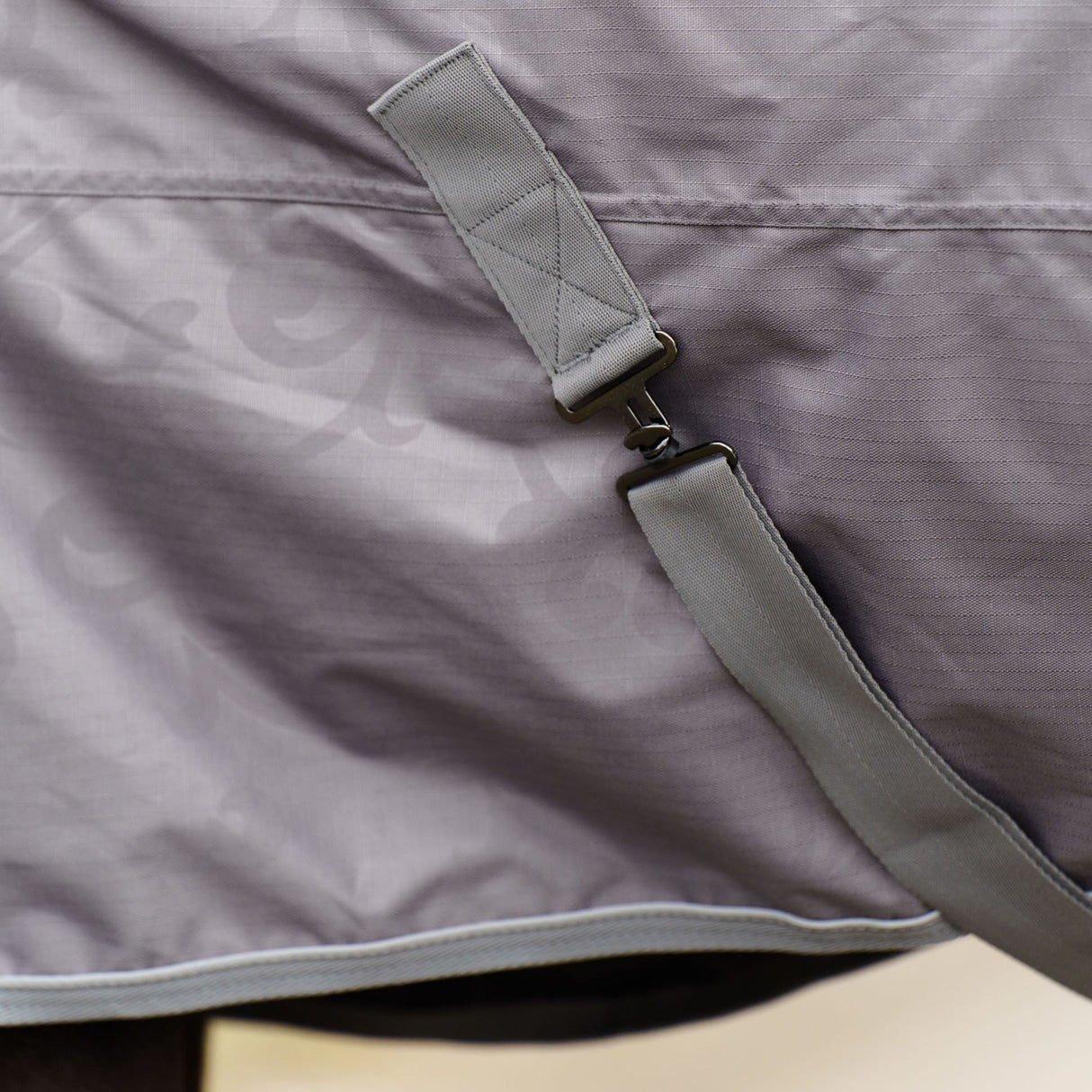 The functional outdoor Super Dry outdoor blanket in an attractive design by Imperial Riding The light and robust Super Dry outdoor blanket offers your horse protection from cold, humidity, and insect - and it looks great all the while! Secure support and great wearing comfort are a guarantee with this withers cushion, 3-way adjustable double chest fastening with carabiner-style clasp, leg straps, a reinforced kick pleat, and the protective tail rubber strip. In visual terms, this item leaves nothing to be desired thanks to its beautiful shiny material with a low-key pattern in a range of different appealing colour shades. This look is complemented by the large-scale Imperial Riding print logo on the back in contrast colours. Warm, dry, comfortable, and stylish - a high-quality all-round item! 600 denier.